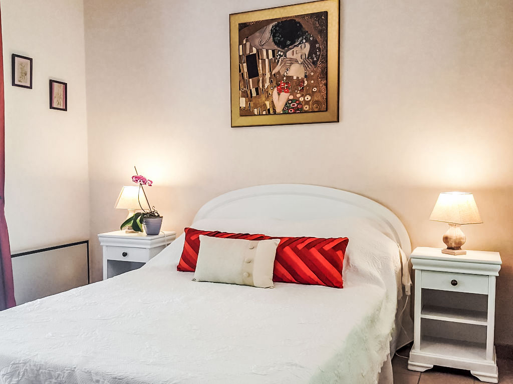 4-Zimmer-Villa 100 m2 auf 2 Stockwerken. Komfortabel und schön eingerichtet: Wohn-/Esszimmer mit TV (Flachbildschirm), Radio und DVD. Ausgang zur Terrasse. 2 Zimmer, jedes Zimmer mit 1 franz. Bett (140 cm, Länge 190 cm). Ausgang zur Terrasse. Küche (Backofen, Geschirrspüler, 3 Induktionskochplatten, Mikrowelle, elektrische Kaffeemaschine). Bad, sep. WC. Obergeschoss: Galerie mit 1 Ausziehbett (2 Pers. 2 x 90 cm, Länge 190 cm), sep. WC. 2 Terrassen überdacht, Südlage und Ostlage, grosser Garten 600 m2. Terrassenmöbel, Gartengrill. Zur Verfügung: Waschmaschine. Internet (Wireless LAN, gratis). Parkplatz, Garage. Bitte beachten: Rauchmelder. Zwischengeschoss im 1. Obergeschoss mit 2 Ausziehbetten (1 Pers, 2 x 90 cm). Inserat einer Privatperson nach Artikel 155, IV, CGI. 8306500006639