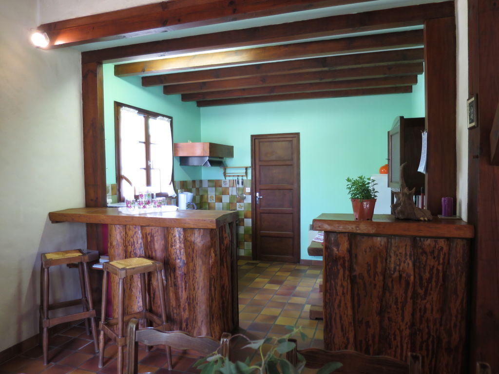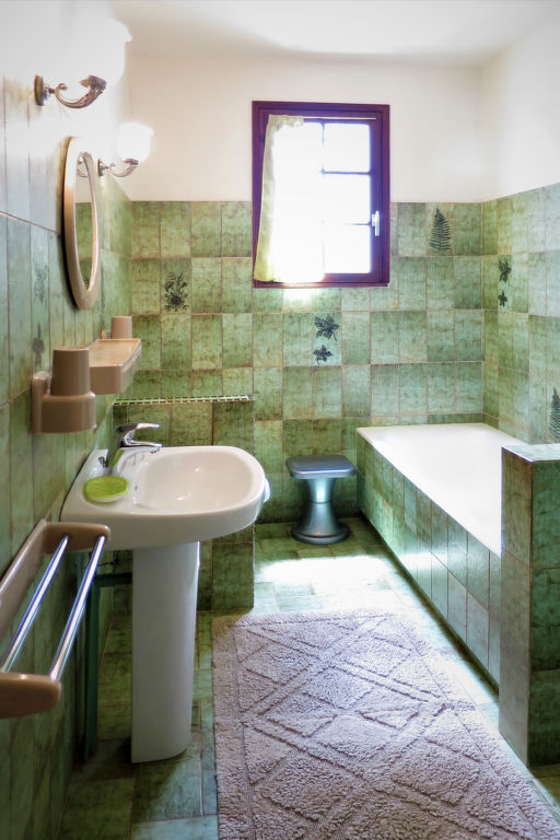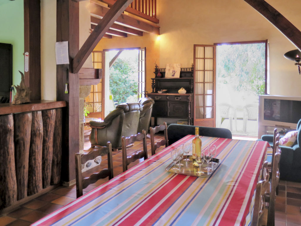 4-Zimmer-Haus, ca. 100 m². Wohnraum mit Sitzgruppe, Kamin (nur Dekoration), Essplatz mit 6 Stühlen, durch Theke mit 2 Barhockern abgeteilte Kochecke (1 Platte, 3 Flammen, Backofen, Mikrowelle, Geschirrspüler, Kühl-/Gefrierkombination, Kaffeemaschine, Wasserkocher, Toaster), 2 Terrassenausgänge. 3 Schlafzimmer, jeweils mit franz. Bett. Bad. Sep.WC.Hinweis: Das Obergeschoss bleibt verschlossen, wird aber zeitweise zur Schlüsselübergabe von der Vermieterin bewohnt. Inserat einer Privatperson nach Artikel 155, IV, CGI.