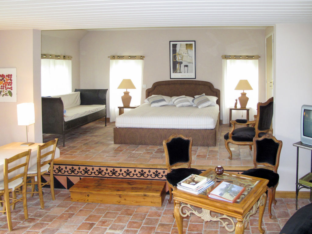 1½-Zimmer-Haus, ca. 60 m². Wohnraum mit Sitzgruppe, Essplatz, Küchenzeile (4 Ceranfelder, Backofen, Geschirrspüler, Kühlschrank, Kaffeemaschine, Wasserkocher, Toaster) und Terrassenausgang. Über zwei Stufen zum erhöhten Schlafbereich mit franz. Bett (1,80 m breit) und Bettcouch für Kind bis 12 Jahre. Bad/Dusche/Doppelwaschbecken. Sep.WC. Maximale Belegung: 2 Erwachsene und 1 Kind. Inserat einer Privatperson nach Artikel 155, IV, CGI.