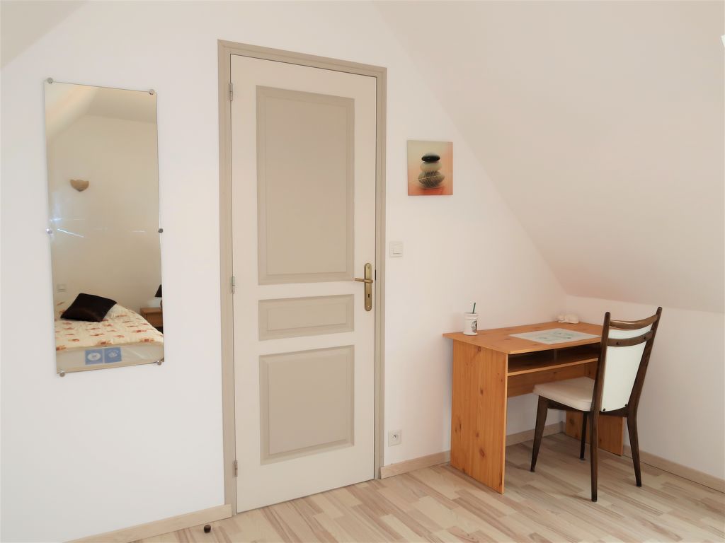 4-Zimmer-Haus, 2 Etagen, ca. 100 m². Erdgeschoss: Wohnraum mit Sitzgruppe, Terrassenausgang. Zum Wohnraum offene Küche (3 Induktionsfelder, Backofen, Mikrowelle, Geschirrspüler, Kühl-/Gefrierkombination, Kaffeemaschine, Wasserkocher, Toaster), Essplatz, Terrassenausgang. Schlafzimmer mit franz. Bett. Bad/Dusche. Sep.WC. Vom Wohnraum Treppe ins Obergeschoss (Dachschräge): Schlafzimmer mit franz. Bett. Zweibettzimmer. Sep.WC. Inserat einer Privatperson nach Artikel 155, IV, CGI.