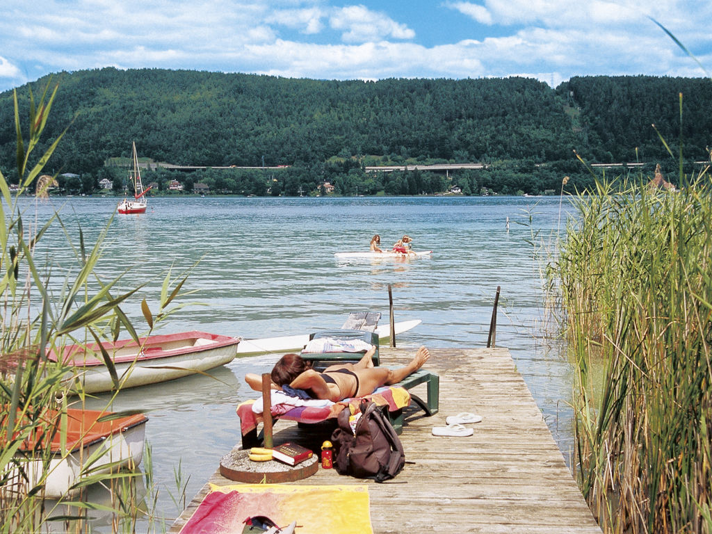 Das schöne Haus SCHELLANDER steht am Südufer, im Ortsteil Auen, 3 km außerhalb von Velden und ca. 150 m vom See entfernt. Vom schönen und liebevoll gepflegten Grundstück am Waldrand direkter Zugang zu einem weitläufigen, markierten Wegenetz (ca. 100 km) mit Fahrrad-, Lauf- und Wanderwegen. Das nächste öffentliche Strandbad mit Kinderspielplatz, Wasserrutsche, Tretboote und Wasserski ist ca. 250 m entfernt (Eintritt gegen Gebühr). Gutbürgerliches Restaurant und Pizzeria ca. 250m. Ein Wanderweg führt vom Haus auf den Pyramidenkogel mit Aussichtsturm und Traumpanorama über den Wörthersee und die umliegende Bergwelt. Golfplatz Dellach 4 km. Tennisplatz 1 km. Schiffshaltestelle der Wörther See-Schiffahrt (Linienfahrten Richtung Klagenfurt) in Velden. Parkmöglichkeiten beim Haus. Neben dem Haupthaus mit einer Ferienwohnung und der Wohnung des Vermieters, liegen ein Ferienbungalow mit zwei getrennten Wohnungen (VEL 151/152) sowie das Ferienhaus (VEL 156) auf dem Grundstück. Schöne Liegewiese mit Gartenmöbeln, Sonnenliegen und Tischtennisplatte stehen zur allgemeinen Verfügung. Nur ca. 100 m vom Haus entfernt (über die Straße) der schön angelegte, hauseigene Badeplatz mit Badesteg (da teilweise naturbelassenes Schilfgebiet, ist der Zugang zum Wasser nur über Steg möglich, Wassertiefe am Stegende ca. 50 cm), Liegewiese mit Liegestühlen und Sonnenschirmen. Ein hauseigenes Ruderboot und 2 ältere Surfbretter zum Baden und Paddeln (eines davon auch zum Surfen) stehen kostenfrei zur Verfügung. 2 Fahrräder stehen den Gästen des Hauses tageweise zur freien Verfügung. Gute Ausstattung und freundliche Einrichtung. Parkettboden, teilweise mit Teppichen belegt, in VEL 150 Parkett- und Laminatboden. Holzdecken. Sat-TV. Internetzugang (WLAN, inklusive). Bei VEL 150/151/152 Wandtresor. Heizung. Hinweis: Rauchen ist in den Häusern nicht gestattet.
