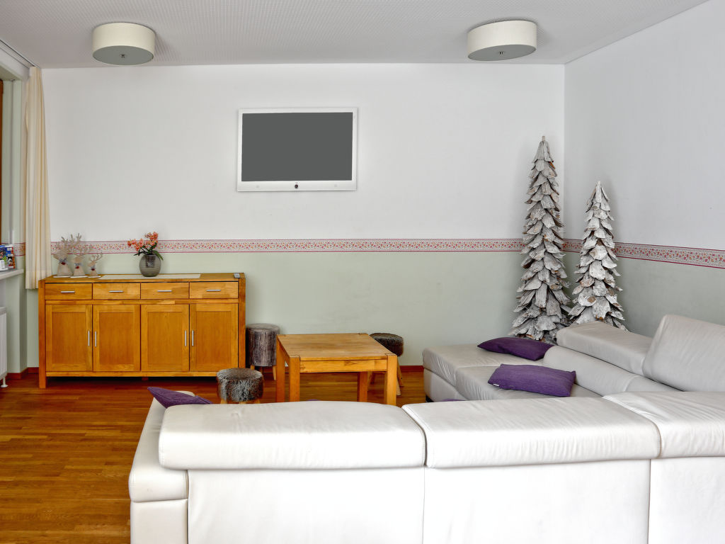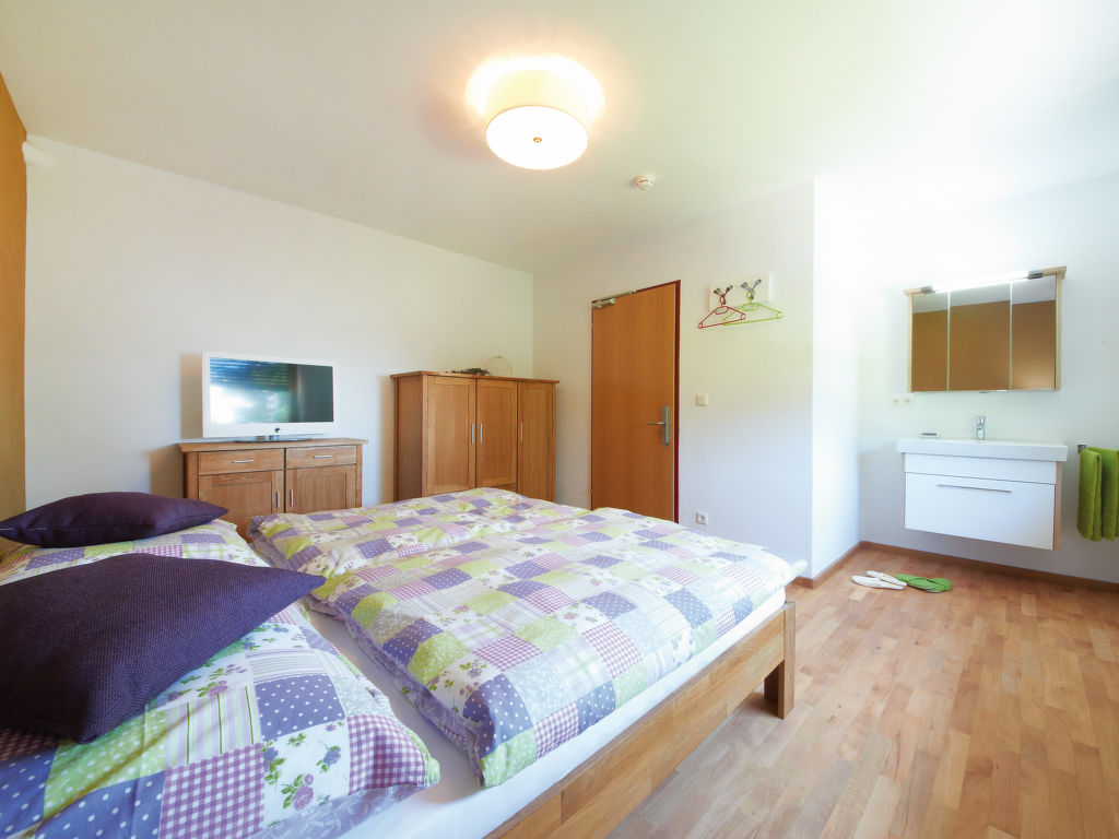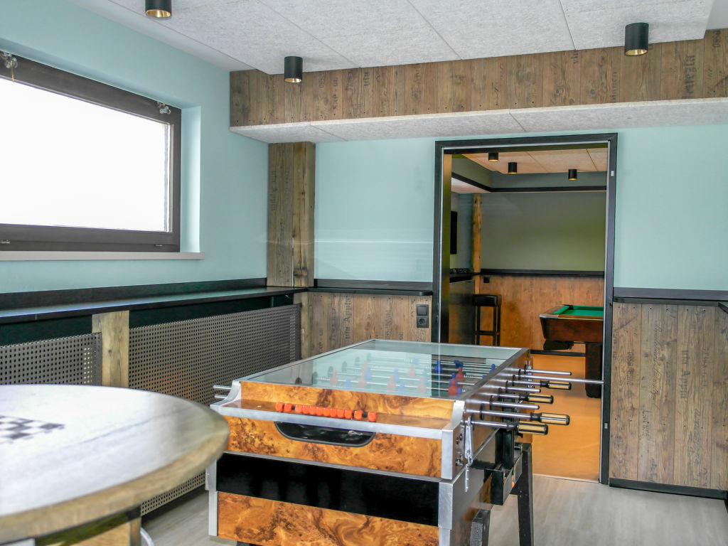 15-Zimmer-Haus auf 4 Stockwerken. Eingang. Spielzimmer. Gepäckraum. Billardzimmer. 4 Duschen. Obergeschoss: grosses Esszimmer mit Sat-TV (Flachbildschirm). 1 Zimmer mit 1 Bett, 1 Doppelbett, Waschbecken und Sat-TV. Grosse Küche (Backofen, Geschirrspüler, Mikrowelle) mit Durchreiche. 4 sep. WC's. 2. Obergeschoss: 4 Doppelzimmer. 1 Zimmer mit 3 Betten und Sat-TV. 3 Zimmer, jedes Zimmer mit 2 Betten und Sat-TV. 2 sep. WC's. Dachgeschoss: 1 Doppelzimmer mit Waschbecken und Sat-TV. 1 Zimmer mit 6 Betten. 2 sep. WC's. Komfortable Einrichtung im Landhausstil. Schöne Panoramasicht auf die Berge. 2 Haustiere/Hunde erlaubt. Bestens geeignet für Großfamilien.