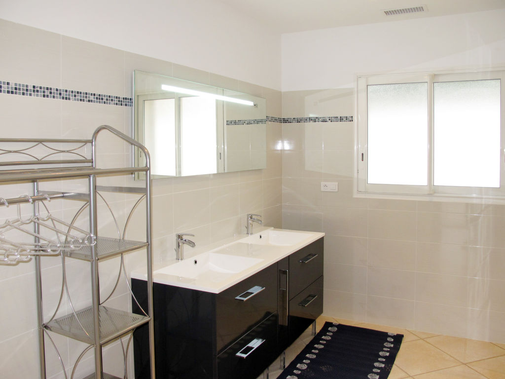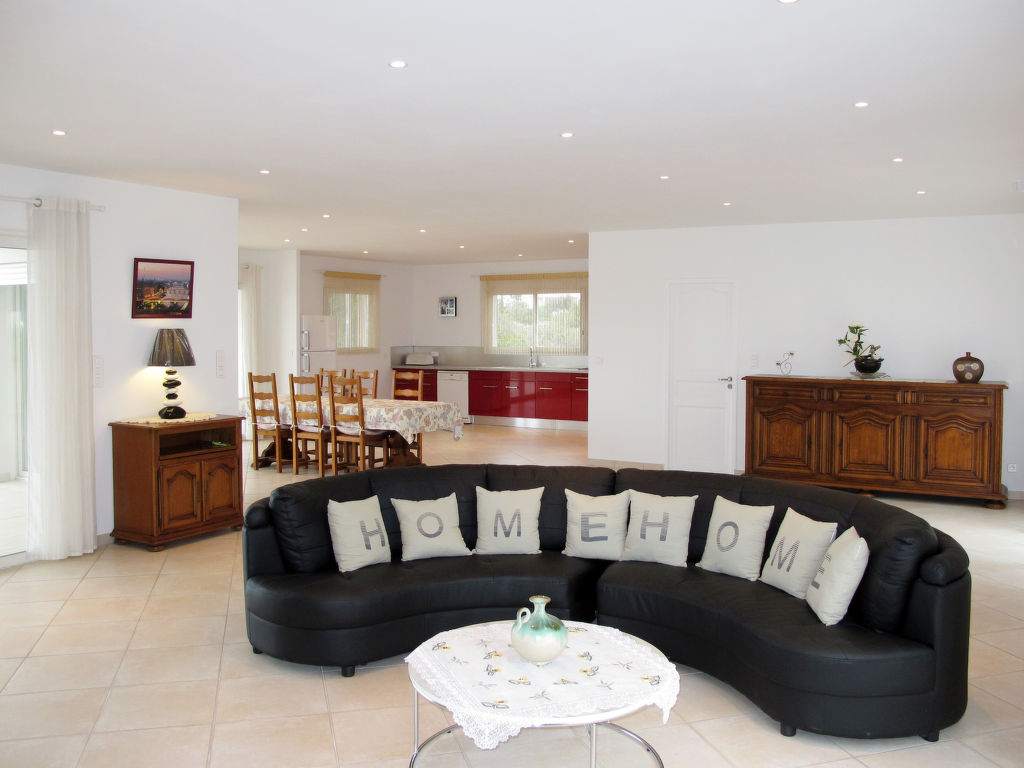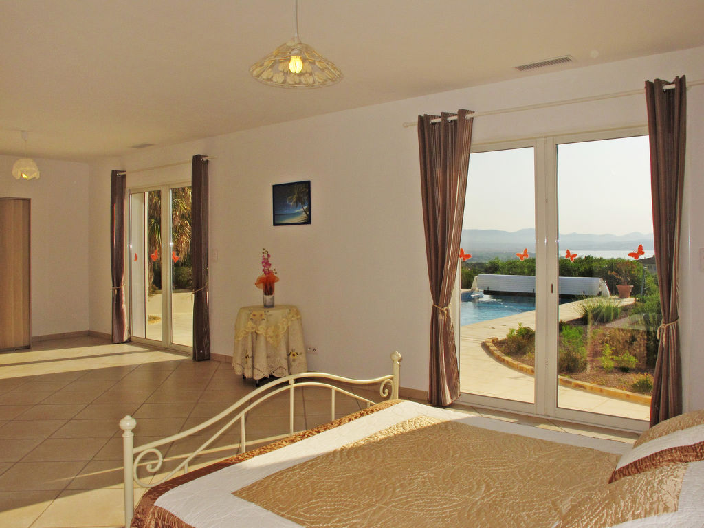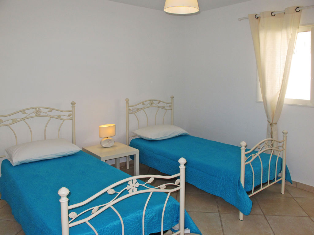 4-Zimmer-Haus, ca. 200 m². Wohnraum mit Sitzgruppe, 3 Terrassenausgänge. Zum Wohnraum offener Essbereich, Terrassenausgang. Zum Essbereich offene Küche (4 Ceranfelder, Backofen, Mikrowelle, Geschirrspüler, Kühl-/Gefrierkombination, Kaffeemaschine, Wasserkocher, Toaster), Terrassenausgang. Großes Schlafzimmer mit franz. Bett (1,80 m breit), 2 Terrassenausgänge. 2 Zweibettzimmer. Dusche/Doppelwaschbecken. Sep.WC. Dusche/Doppelwaschbecken/WC.Hinweis: Bei Buchung zum Preis für 2 Personen bleiben 2 Schlafzimmer verschlossen.