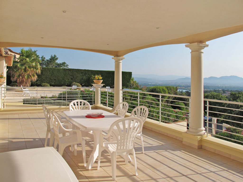 Das 2012 gebaute Ferienhaus steht in einem Villenviertel oberhalb von St. Aygulf, 2 km vom Ortszentrum und 3 km vom nächsten Sandstrand entfernt. Ca. 1400 m² großes, umzäuntes, terrassiertes, angelegtes Hanggrundstück mit Parkmöglichkeit für 3 Pkw. Beheizbarer Überlaufpool (10 x 4 m, ganzjährig) mit Terrasse und 6 Liegen. Am Haus große überdachte Terrasse mit Mobiliar, Elektrogrill (Plancha) und schönem Meerblick. Gepflegte, ansprechende Einrichtung mit großzügiger Raumaufteilung. Fliesenböden. Sat-TV (deutsche Programme), Stereoanlage. Internetzugang (WLAN, inklusive). Waschmaschine. Klimaanlage mit Kühl-/Heizfunktion. Hinweis: Rauchen ist im Haus nicht gestattet.