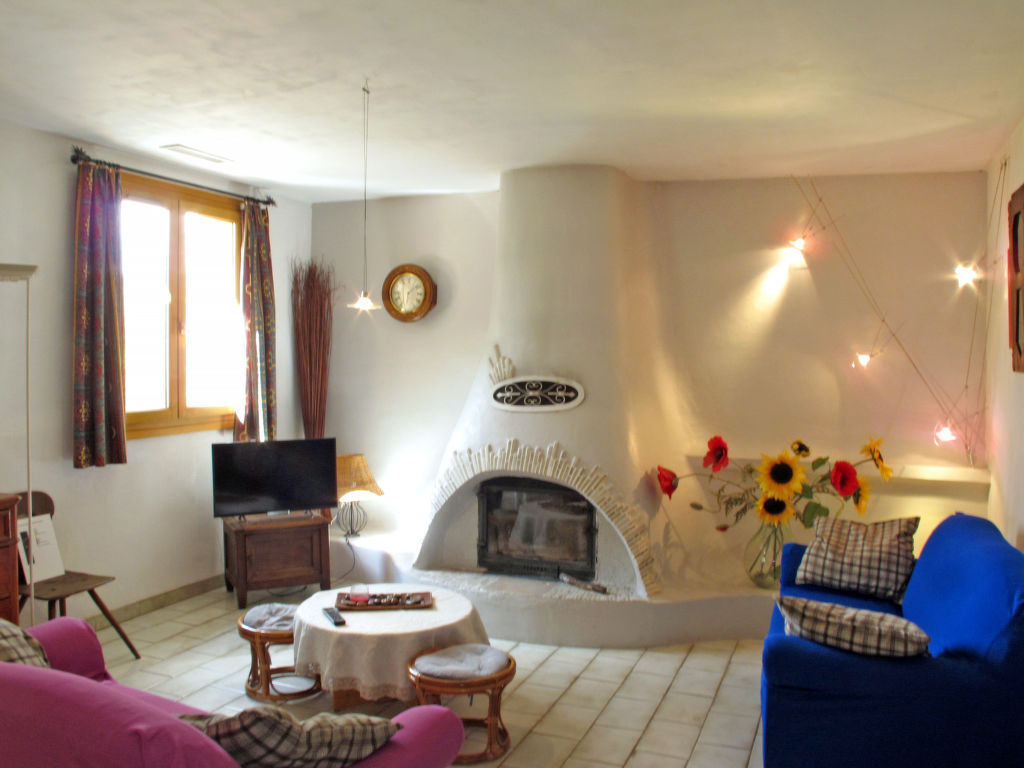 3-Zimmer-Haus, ca. 85 m². Wohnraum mit Sitzgruppe, Kamin (nur Dekoration), Essplatz, Terrassenausgang. Zum Wohnraum offene Küche (4 Ceranfelder, Backofen, Mikrowelle, Kühl-/Gefrierkombination, Kaffeemaschine, Wasserkocher, Toaster). Doppelzimmer. Zweibettzimmer. Dusche. Sep.WC. Inserat einer Privatperson nach Artikel 155, IV, CGI.