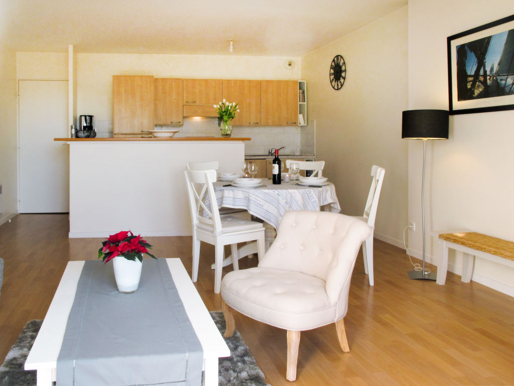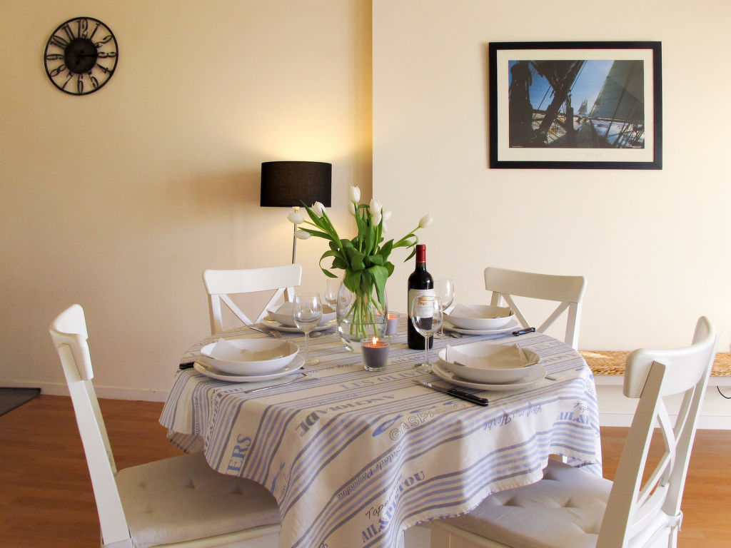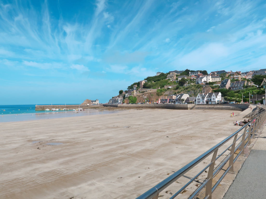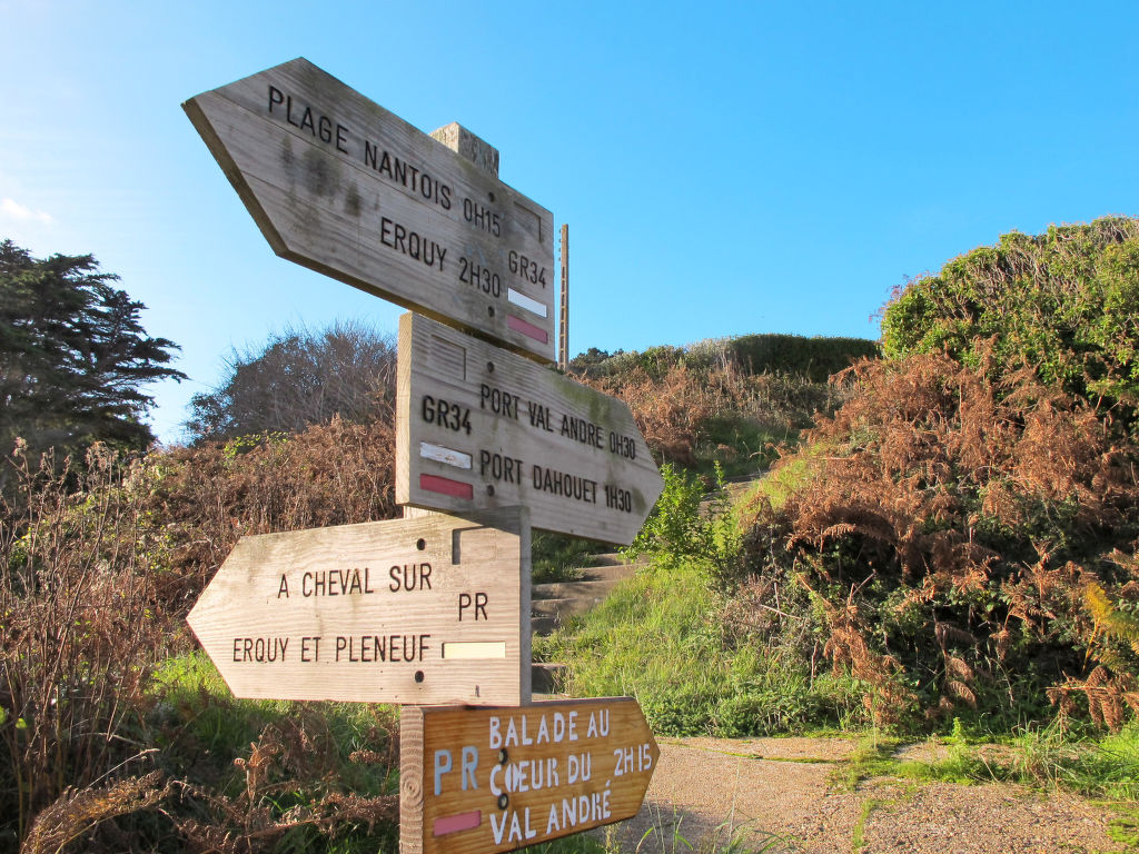 Die Residenz VILLA MARJOLAINE steht in einem Wohnviertel, ca. 700 m vom Sandstrand 'Plage des Vallées' und ca. 600 m vom Golfplatz entfernt. Ortsmitte und Hauptstrand von Pléneuf-Val André jeweils ca. 700 m. Supermarkt 1 km. Die 15 Appartements der zwei-bis dreigeschossigen Residenz sind in Privatbesitz und werden vorwiegend als Ferienwohnungen genutzt. Unsere Wohnung liegt im mittleren Bereich der 3 Gebäudeteile und hat einen eigenen Balkon mit Mobiliar. Reservierter Parkplatz. Abschließbarer Fahrradraum zur Mitbenutzung. Helle, angenehme Einrichtung. Linoleum- und Teppichboden. Sat-TV (deutsche Programme). CD. Radio. Waschtrockner, Bügeleisen/-brett. Elektroheizung. Hinweis: Rauchen ist in der Wohnung nicht gestattet.