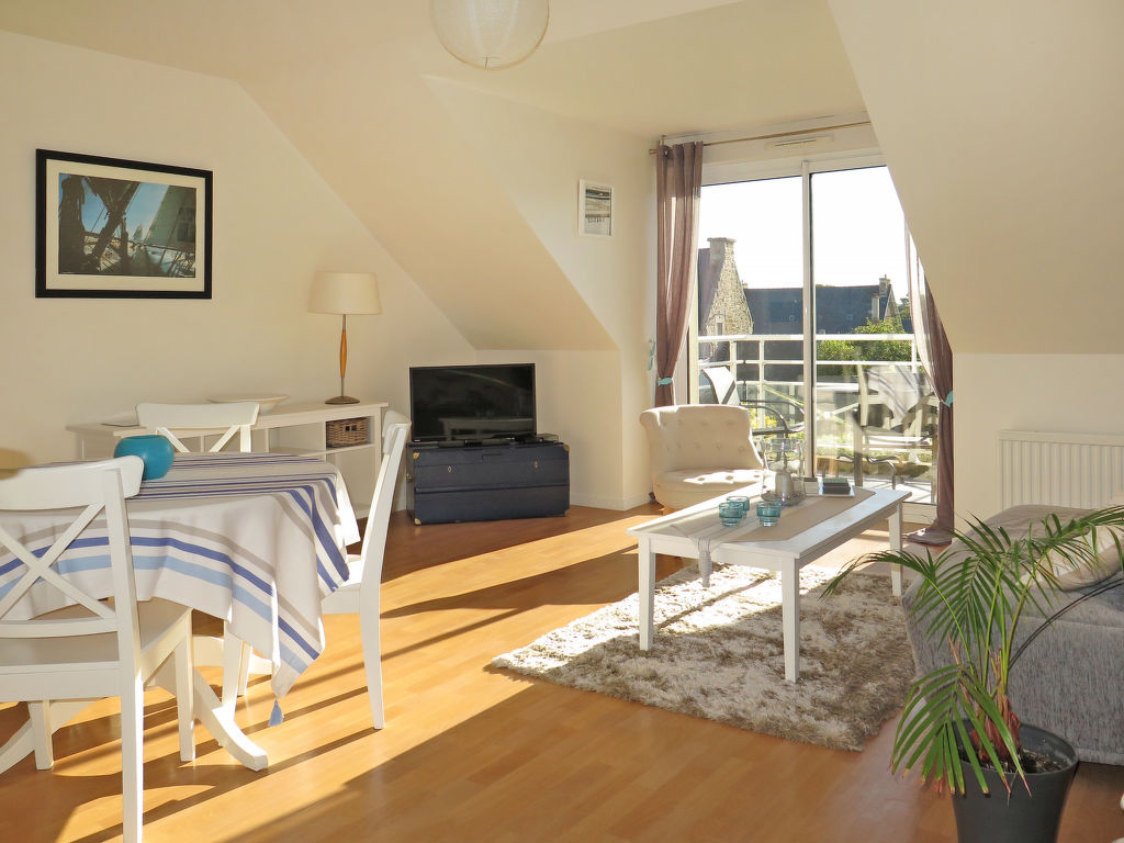 3-Zimmer-Wohnung, 1. Etage, ca. 55 m². Separater Zugang über Außentreppe. Wohnraum mit Sitzcouch und Sessel, Essplatz, Balkonausgang. Durch Theke abgeteilte Küchenzeile (4 Flammen, Backofen, Mikrowelle, Geschirrspüler, Kühl-/Gefrierkombination, Kaffeemaschine, Wasserkocher, Toaster). Schlafzimmer (Dachschräge) mit franz. Bett. Zweibettzimmer (Dachschräge, Dachfenster). Dusche. Sep.WC. Inserat einer Privatperson nach Artikel 155, IV, CGI.