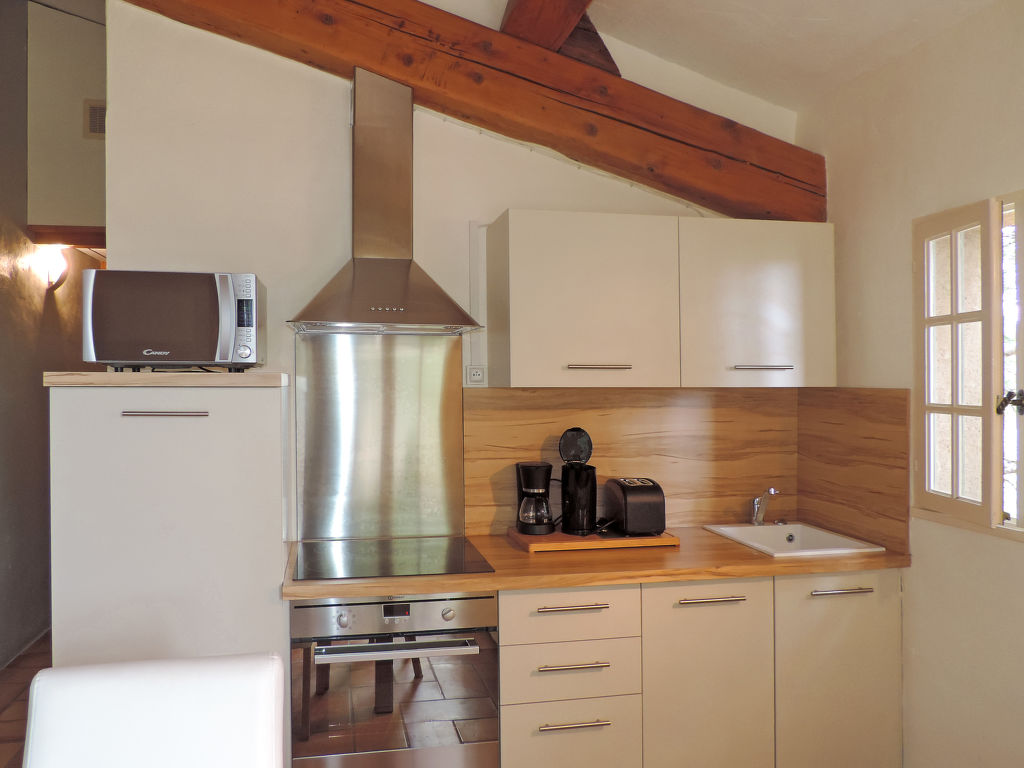 "Les Garrigues d.l. Vallée d.B. (MSL174)", 1-Zimmer-Wohnung 35 m2 auf 2 Stockwerken im 1. Stock. Geschmackvoll eingerichtet: Wohn-/Esszimmer mit Esstisch, Sat-TV und Klimaanlage. Ausgang zum Balkon. Kochnische (2 Kochplatten, Geschirrspüler, Toaster, Wasserkocher, elektrische Kaffeemaschine, Kombinationsmikrowelle). Dusche, sep. WC. Obergeschoss: abgeschrägte, offene Galerie mit 1 franz. Bett (160 cm). Ausgang zum Balkon. E-Heizung. Kleiner Balkon. Balkonmöbel. Schöne Sicht auf die Landschaft. Zur Verfügung: Fliegengitter, Kinderhochstuhl, Babybett. Internet (Wireless LAN, gratis). Parkplatz (1 Auto). Bitte beachten: Nichtraucher-Unterkunft. Maximal 1 Haustier/Hund erlaubt. Rauchmelder, Feuerlöscher. Dieser Wohnungstyp kann auch auf einer Ebene angelegt sein. Dann gibt es anstelle der offenen Galerie ein Schlafzimmer mit franz. Bett (1,60 m breit).