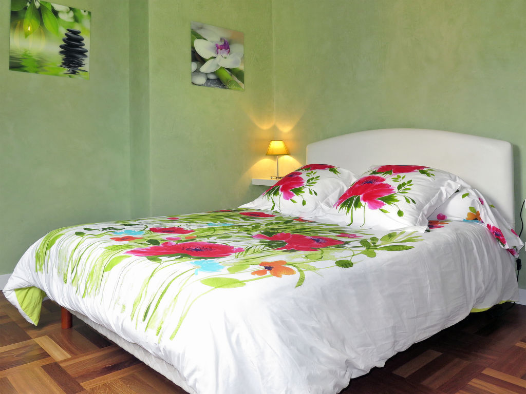 4½-Zimmer-Haus, 2 Etagen, ca. 90 m². Erdgeschoss: Eingangsbereich mit Schreibtisch. Wohnraum mit Sitzgruppe und Essplatz, 2 Glasschiebetüren zur Terrasse. Zum Wohnraum offene Küche (3 Induktionsfelder, Backofen, Mikrowelle, Geschirrspüler, Kühlschrank, Kaffeemaschine, Wasserkocher, Toaster, kleiner Gefrierschrank in Abstellraum). Sep.WC. Vom Wohnraum Treppe ins Obergeschoss (Dachschräge): Offene Galerie mit kleiner Sitzcouch. 3 Schlafzimmer, jeweils mit franz. Bett (eines davon 1,60 m breit). Dusche/Doppelwaschbecken. Sep.WC. Flexibilität bei der Bettenaufteilung: Es stehen mehr Schlafmöglichkeiten zur Verfügung als die maximal zugelassene Personenzahl, diese darf dennoch nicht überschritten werden. Inserat einer Privatperson nach Artikel 155, IV, CGI.