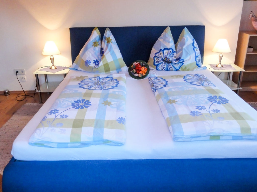 "Villa Schönblick", 3-Zimmer-Wohnung 55 m2 im 1. Stock. Wohn-/Esszimmer. Ausgang zum Balkon. 1 Doppelzimmer. 1 Zimmer mit 2 Betten. Wohnküche (4 Kochplatten, Backofen, Geschirrspüler, Wasserkocher, Mikrowelle, elektrische Kaffeemaschine). Bad/WC. Ölheizung. Parkettböden. Balkonmöbel. Schöne Panoramasicht auf die Landschaft. Zur Verfügung: Waschmaschine (extra). Internet (Wireless LAN, gratis). Bitte beachten: geeignet für Familien. Nichtraucher-Unterkunft.