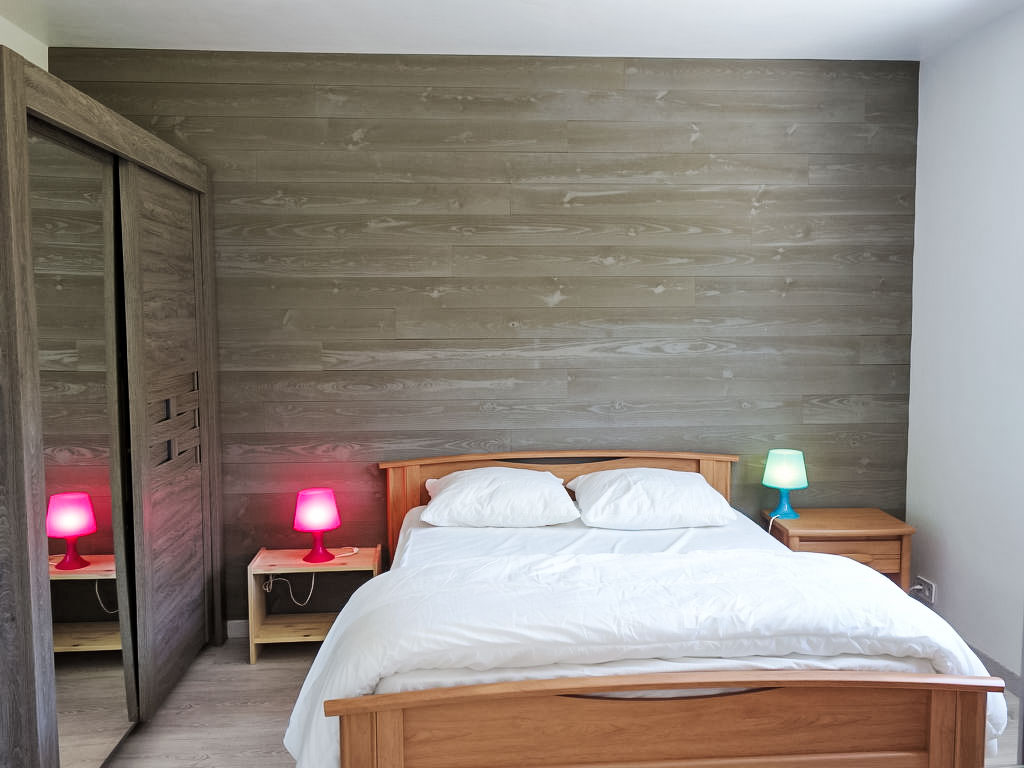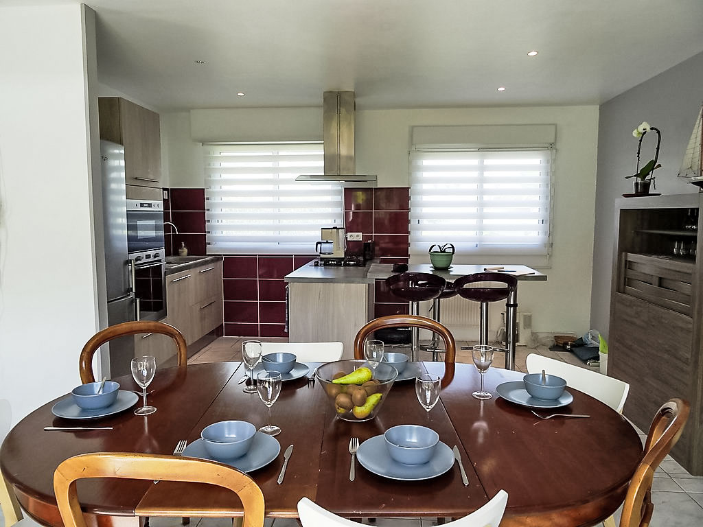5-Zimmer-Haus 110 m2 auf 2 Stockwerken. Wohn-/Esszimmer mit offenem Kamin und TV (Flachbildschirm). Ausgang zur Terrasse. 1 Zimmer mit 1 franz. Bett und Dusche. Offene Küche (Backofen, Geschirrspüler, Mikrowelle, Tiefkühler, Kochinsel). Sep. WC. Obergeschoss: 1 Zimmer mit 2 Betten (90 cm). Durchgangszimmer mit 2 Betten (90 cm, Länge 190 cm). 1 Zimmer mit 2 Betten (90 cm, Länge 190 cm). Dusche/WC. Ölheizung. Terrasse 30 m2. Terrassenmöbel, Liegestühle (2). Zur Verfügung: Waschmaschine, Bügeleisen. Internet (Wireless LAN, gratis). Bitte beachten: 1 Haustier/Hund erlaubt. Rauchmelder. Inserat einer Privatperson nach Artikel 155, IV, CGI.