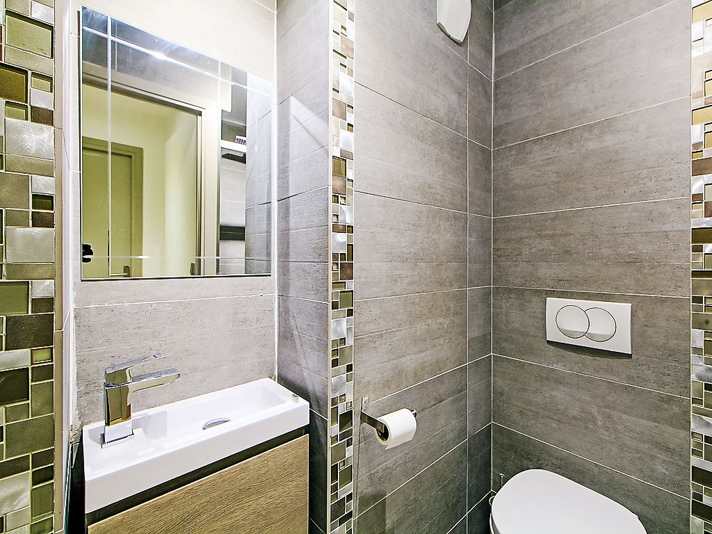 Schöne Residenz "Lerins", auf 6 Stockwerken. Im Ortsteil Palm Beach, 50 m vom Meer, 50 m vom Strand. Im Hause: Fahrstuhl. Lebensmittelgeschäft 100 m, Restaurant 50 m, Bushaltestelle 100 m. Sporthafen 300 m. Nahe gelegene Sehenswürdigkeiten: Marineland 13 km, Palais des Festivals 2.5 km.