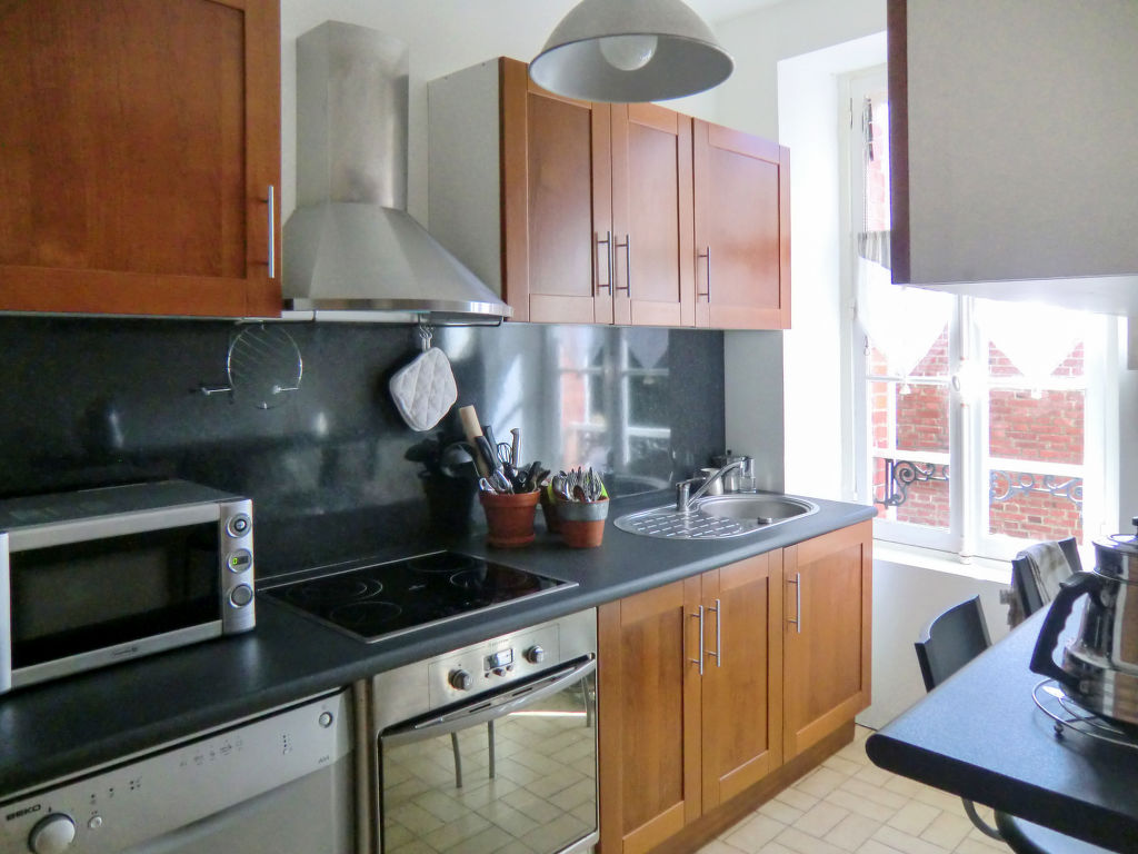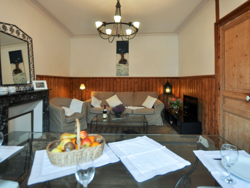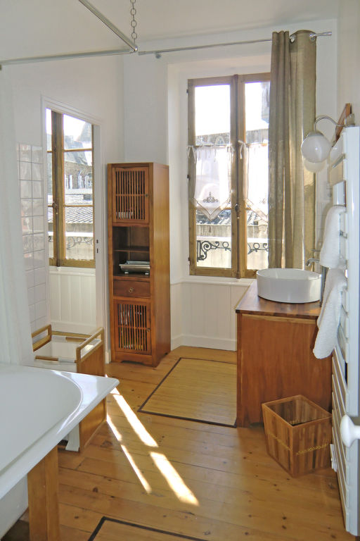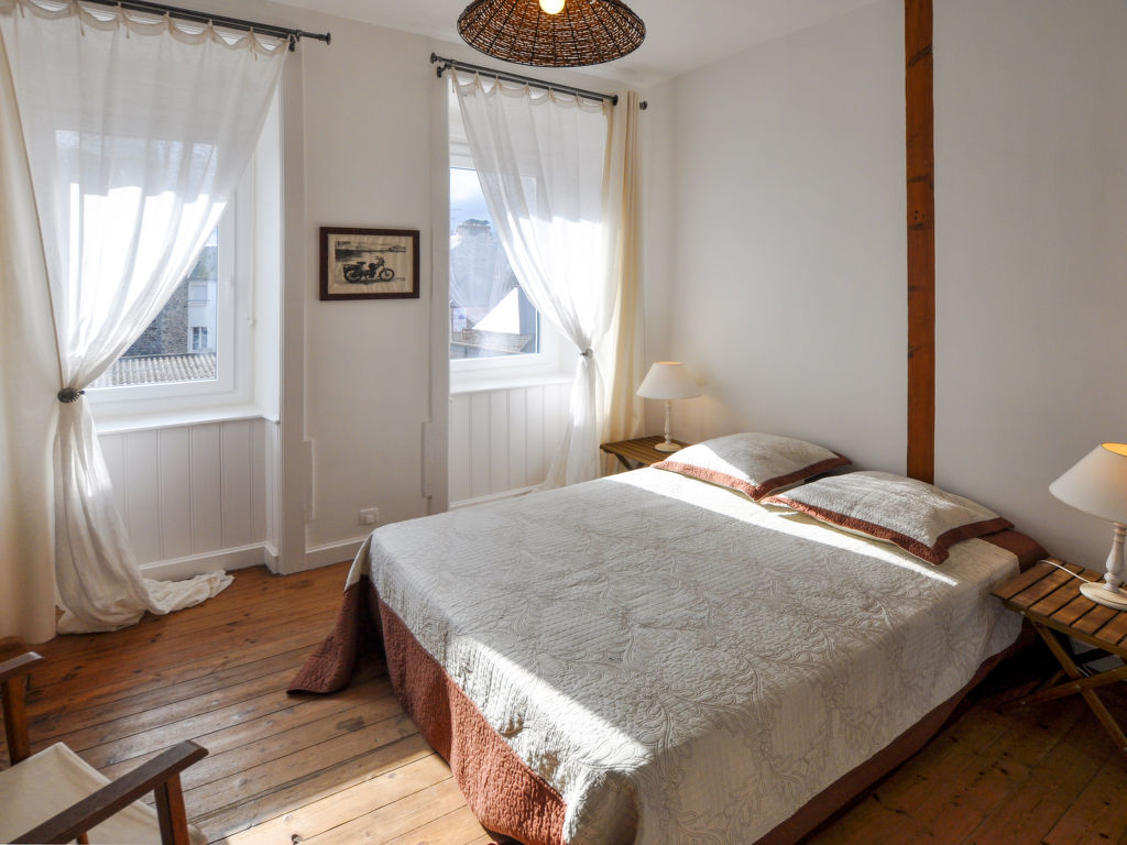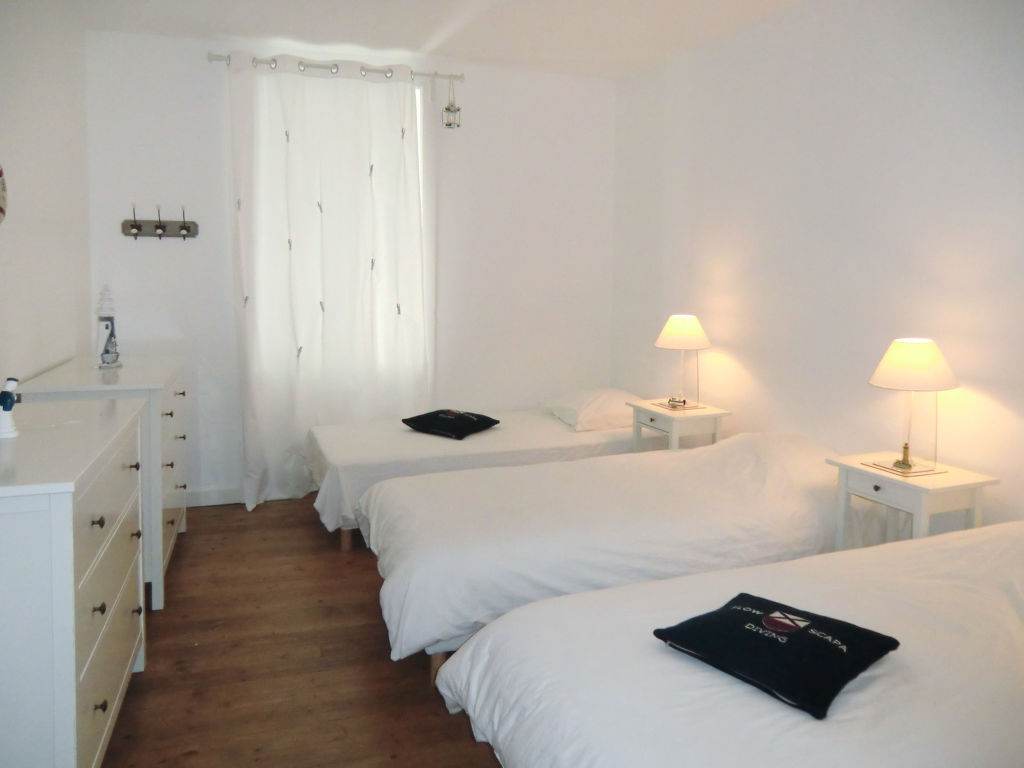 4-Zimmer-Haus, 3 Etagen, ca. 160 m². Über 2 Stufen ins Hochparterre: Wohnraum mit Sitzgruppe, Kamin (nur Dekoration), Essplatz. Küche (4 Induktionsfelder, Backofen, Mikrowelle, Geschirrspüler, Kühl-/Gefrierkombination, Kaffeemaschine, Toaster). Sep.WC. 1. Etage: Schlafzimmer mit franz. Bett. Bad/WC. 2. Etage: Schlafzimmer mit franz. Bett. Vierbettzimmer. Maximale Belegung: 6 Erwachsene und 2 Kinder. Inserat einer Privatperson nach Artikel 155, IV, CGI.