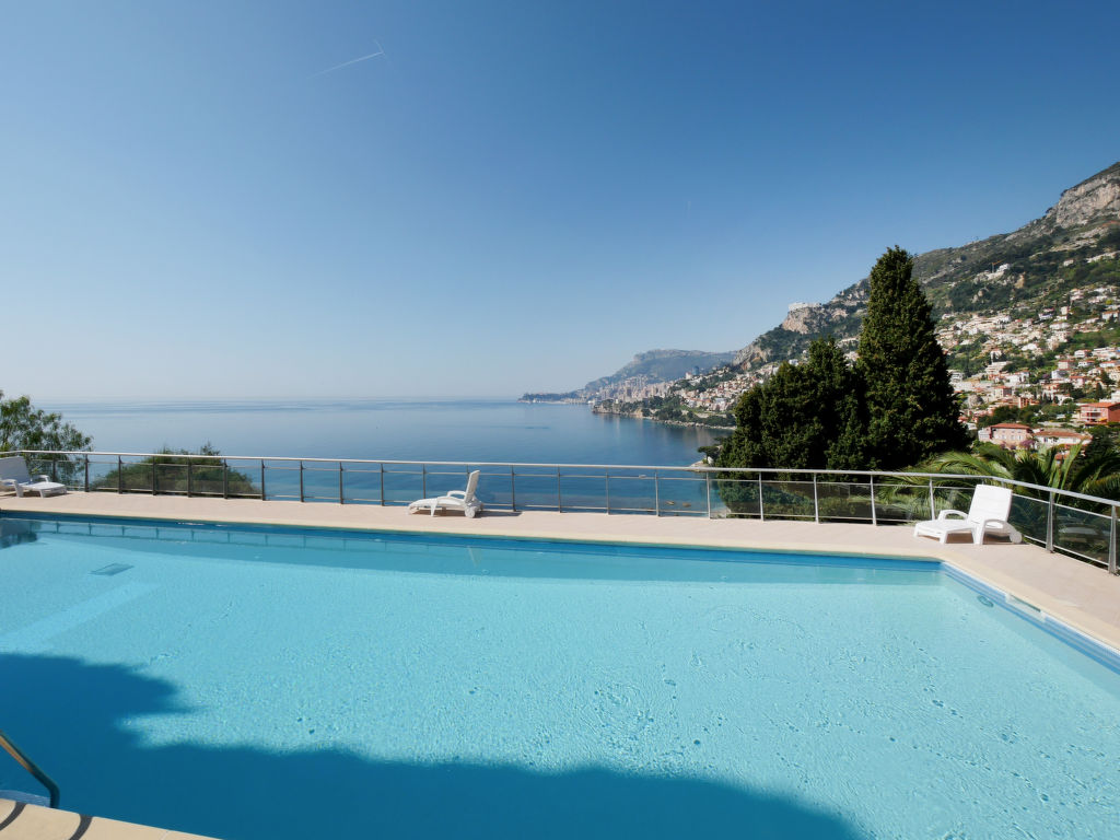 Die Anfang der 70er-Jahre gebaute sechsgeschossige Appartementanlage PARC MASSOLIN mit insgesamt 80 Wohnungen steht in exponierter Lage ca. 80 m über dem Meer mit unverbautem Blick auf die Küstenlinie bis Monaco. Ortsmitte Cap Martin mit Einkaufsmöglichkeiten ca. 600 m, Roquebrune 2 km. Monte Carlo ist 3 km entfernt. Nizza 25 km. Ein steiler, ca. 350 m langer Fußweg über Natursteintreppen führt zum Kiesstrand unterhalb der Anlage. Bahnhof ca. 750 m. Zur gemeinsamen Nutzung gepflegte, ca. 2,5 ha große, umzäunte Parkanlage mit üppiger Bepflanzung und altem Baumbestand. Elektrisches Einfahrtstor. In schöner Aussichtslage großer Gemeinschaftspool (18 x 6 m, 01.04.-31.10., beheizt vom 01.04.-31.05.) mit Terrasse, einigen Liegen (je nach Verfügbarkeit) und Außendusche. In der Anlage stundenweise geöffnete Rezeption. Aufzug zu allen Etagen. Zu der von uns angebotenen Wohnung gehört ein PKW-Stellplatz. Teilüberdachter, ca. 18 m² großer Balkon mit Mobiliar, 2 Liegen und traumhaftem Meerblick, weiterer kleiner Balkon mit Markise. Die 2016 teilrenovierte Wohnung ist hell und modern eingerichtet. Fliesen- und Marmorböden. Sat-TV (deutsche Programme), DVD. Internetzugang (WLAN, inklusive). Waschmaschine, Bügeleisen/-brett. Safe. In den Schlafzimmern Fliegengitter. Öl-Zentralheizung und Klimaanlage mit Kühl-/Heizfunktion. Hinweis: Rauchen ist in der Wohnung nicht gestattet.