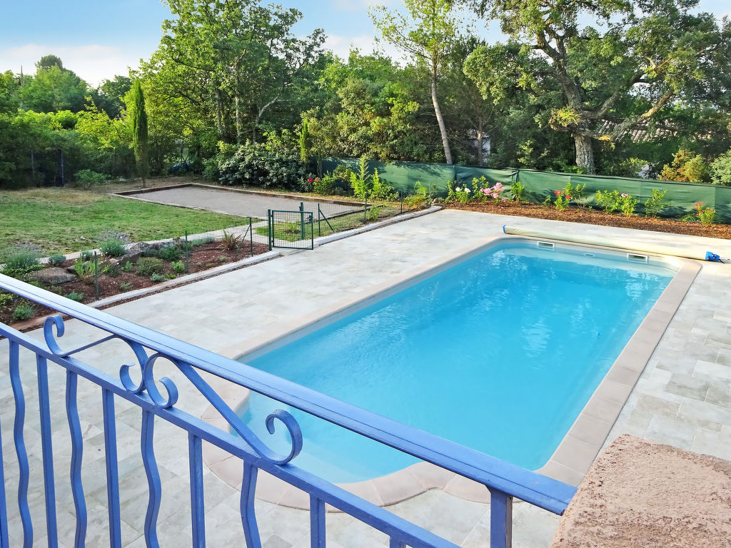 Das Ferienhaus steht in einem Wohngebiet von Vidauban. Ortsmitte und Supermarkt 1,5 km. Zu den Sandstränden bei Fréjus und Sainte Maxime 30 km. Zufahrt ca. 100 m über Feldweg. 2 Parkmöglichkeiten auf dem Grundstück, eine davon überdacht. Ca. 1600 m² großes, durch Zaun und Hecke abgeschlossenes, bepflanztes, gepflegtes Rasengrundstück (elektrisches Einfahrtstor). 9 Stufen unterhalb des Hauses liegt der Pool (10 x 4,20 m, 0,50-1,90 m tief, (25.04.-10.10.) mit umlaufender Terrasse, Außendusche, 8 Sonnenliegen. Bouleplatz. Am Haus teilüberdachte, erhöhte Terrasse mit Gartenmobiliar, Gasgrill. Helle, feriengerechte, geschmackvolle Einrichtung. Fliesenböden. TV. Internetzugang (WLAN, inklusive). Waschmaschine, Bügeleisen/-brett. Abstellraum. Öl-Zentralheizung. Hinweis: Rauchen ist im Haus nicht gestattet.