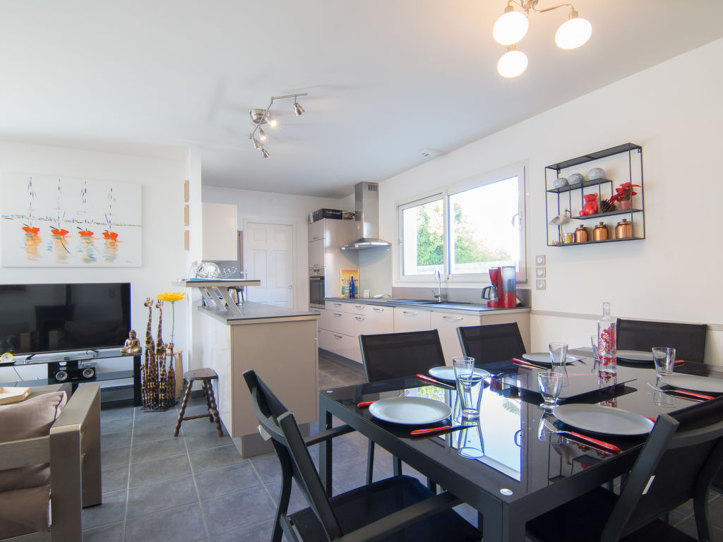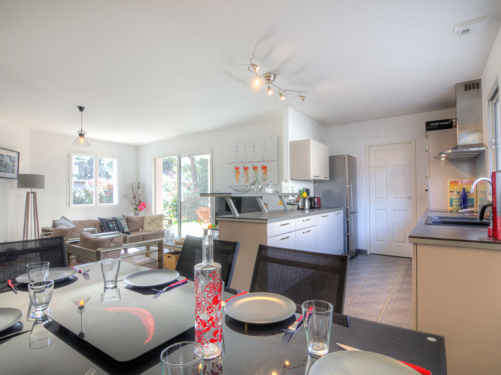 4-Zimmer-Haus 88 m2. Komfortabel und schön eingerichtet: Wohn-/Esszimmer mit TV (Flachbildschirm). Ausgang zur Terrasse. 1 Zimmer mit 1 franz. Bett (1 x 160 cm, Länge 190 cm). 1 Zimmer mit 1 franz. Bett (1 x 160 cm, Länge 190 cm). 1 Zimmer mit 2 Betten (80 cm, Länge 190 cm). Offene Küche (Geschirrspüler, 3 Induktionskochplatten, Mikrowelle, elektrische Kaffeemaschine). Dusche, sep. WC. Terrasse 15 m2, überdacht, Südostlage. Terrassenmöbel, Gartengrill. Zur Verfügung: Waschmaschine, Wäschetrockner, Bügeleisen. Internet (Wireless LAN, extra). Parkplatz. Bitte beachten: Nichtraucher-Unterkunft. Rauchmelder. Inserat einer Privatperson nach Artikel 155, IV, CGI. 40133000038M6