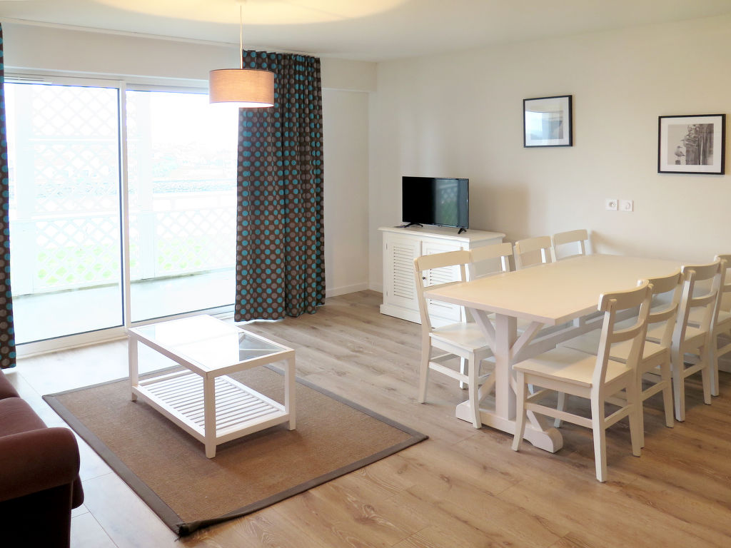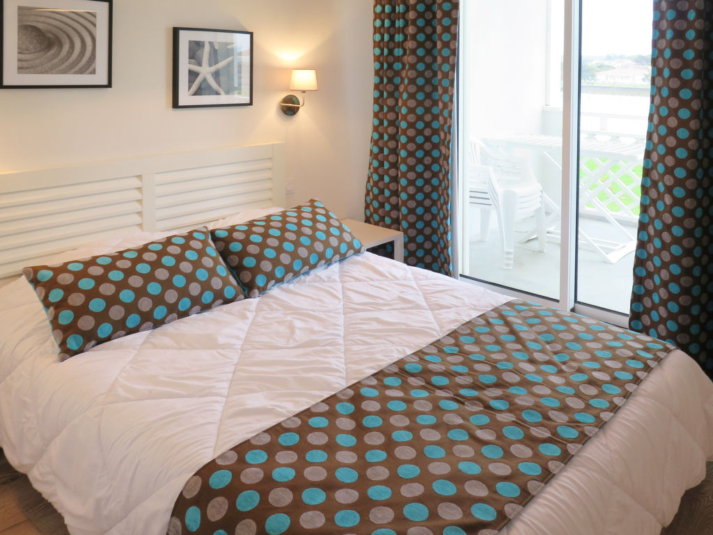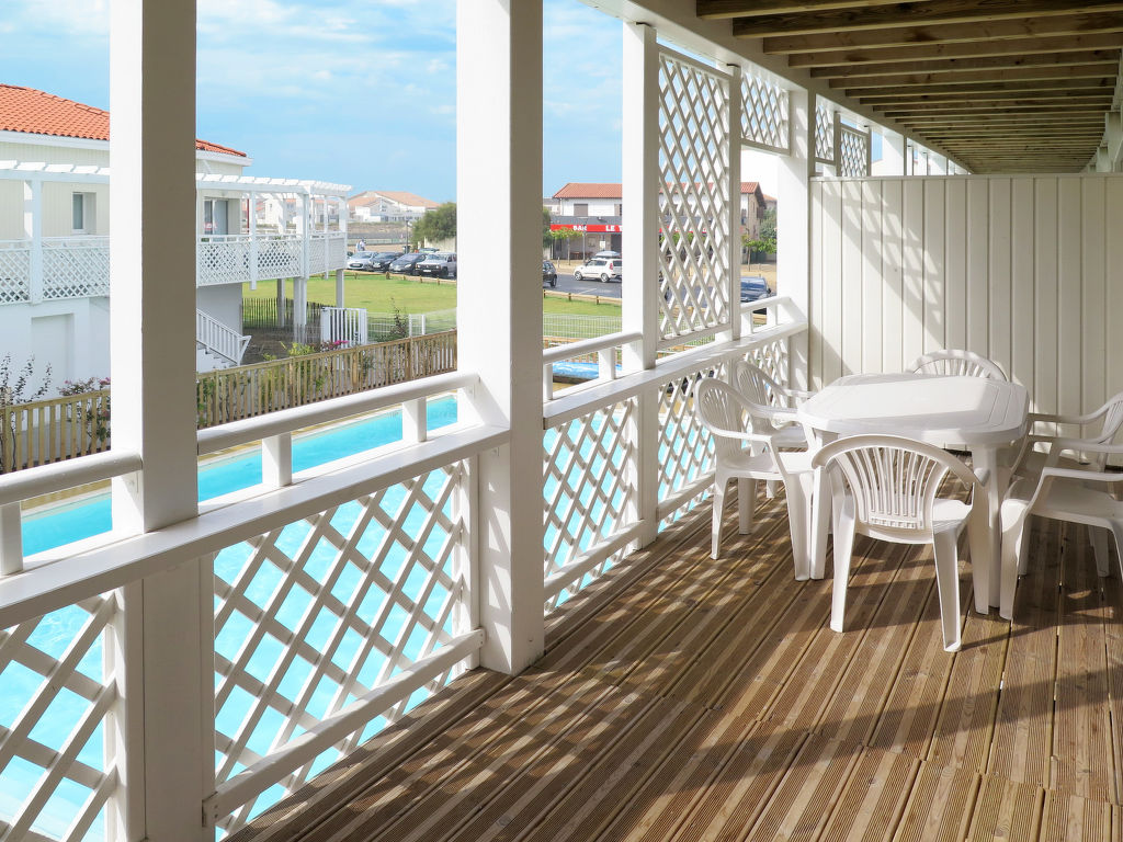 Ferienanlage "Les Balcons des Pêcheurs", auf 3 Stockwerken. 5 Häuser in der Residenz. 65 Wohnungen in der Residenz. 250 m vom Zentrum von Mimizan-Plage, 6 km vom Zentrum von Mimizan-Bourg, 70 km vom Zentrum von Arcachon, 300 m vom Meer, 300 m vom Strand, 50 m vom Fluss. Zur Mitbenutzung: Schwimmbad, Hallenbad beheizt (150 - 155 cm tief, saisonale Verfügbarkeit: 21.Mar.-07.Nov.). Kinderbecken. In der Anlage: Empfang, Wireless LAN, Sauna, Fitnessraum, Dampfbad, Sprudelbad, Einstellraum für Fahrräder, Waschmaschine, Wäschetrockner (zur Mitbenutzung, extra). Parkplatz auf dem Grundstück. Supermarkt 500 m, Sandstrand "Courant" 50 m. Das Foto ist nur ein Wohnungsbeispiel. Die Mietobjekte können sich in Wohnfläche, Raumaufteilung, Ausstattung und Einrichtung unterscheiden.