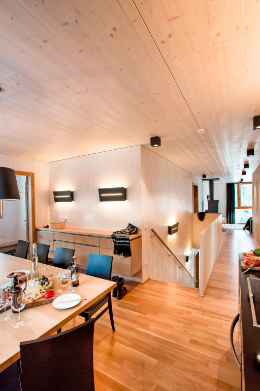 "Gradonna Mountain Resort (KAX102)", 4-Zimmer-Chalet 250 m2. Objekt geeignet für 6 Erwachsene + 2 Kinder. Modern und geschmackvoll eingerichtet: Wohn-/Schlafzimmer mit 1 Doppeldiwanbett, Sat-TV, Radio und Holzofen. Ausgang zum Balkon, zur Terrasse. 3 Zimmer, jedes Zimmer mit 1 Doppelbett, sep. WC und Dusche. Offene Küche (Backofen, Geschirrspüler, 4 Glaskeramikherd Platten, Wasserkocher, Mikrowelle) mit Esstisch. Sauna. Bodenheizung. Parkettböden. Balkon oder Terrasse. Balkonmöbel. Panoramasicht. Zur Verfügung: Waschmaschine, Wäschetrockner, Sauna, Safe, Haartrockner. Internet (Wireless LAN, gratis). Parkplatz (überdacht, 2 Autos). Bitte beachten: Nichtraucher-Unterkunft. Maximal 2 Haustiere/Hunde erlaubt. 4-Zimmer-Chalet, ca. 250 m². Großer Wohn-/Schlafraum auf 2 Ebenen mit Doppelbettcouch und Kaminofen (Holz inklusive), offene Küche (4 Ceranfelder, Backofen, Mikrowelle, Geschirrspüler, Kühlschrank, Wasserkocher) mit Essplatz, Balkon- oder Terrassenausgang. 3 Doppelzimmer. 3x Dusche. 3x sep.WC. Sauna. Infrarotkabine. Frischluftatrium.