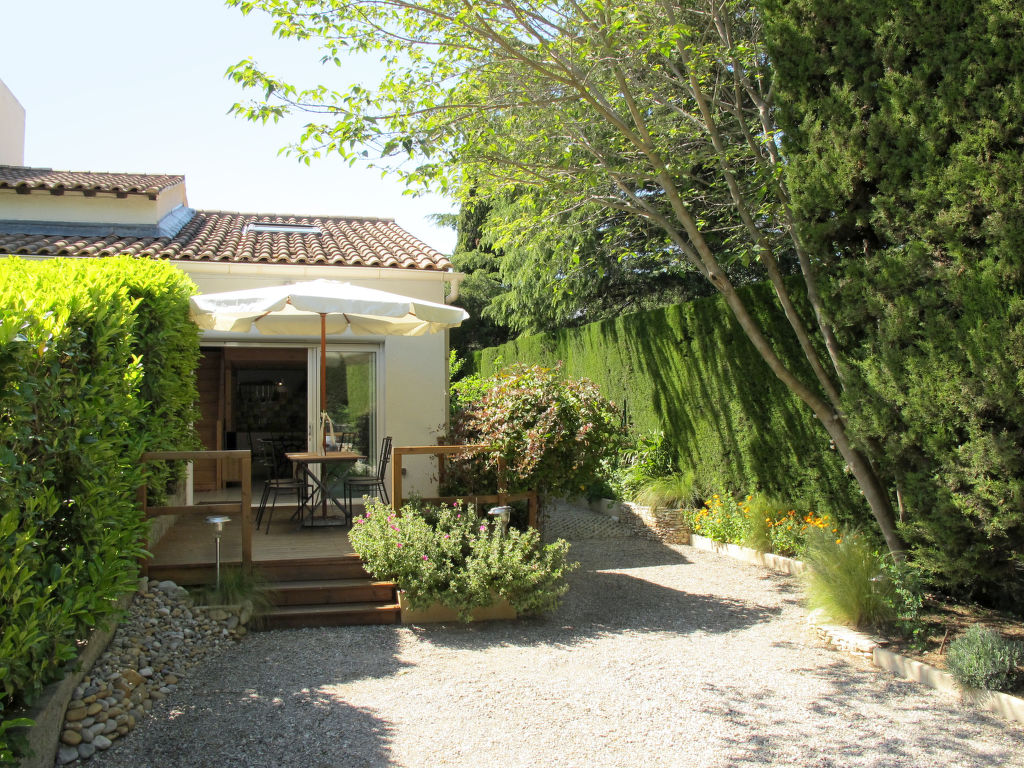 Der Ferienhausteil liegt in einer Stichstraße in einem Wohngebiet von Villeneuve-lès-Avignon, 5 km vom Ortszentrum von Avignon entfernt. Der mittelalterliche malerische Ortskern von Villeneuve-lès-Avignon ist 2,5 km entfernt. Nächste Einkaufsmöglichkeiten 1 km. Der Hausteil grenzt an das Haus der freundlichen, deutschsprachigen Besitzerin, beide Hausteile jedoch mit separatem Zugang. Ca. 2000 m² großes, abgeschlossenes, schön angelegtes Gartengrundstück (elektrische Toreinfahrt) mit kleinem Teich zur gemeinsamen Nutzung. Zu unserem Hausteil gehört eine Holzterrasse mit Mobiliar und 2 Liegestühlen. Parkmöglichkeit auf dem Grundstück. Ansprechende, feriengerechte Einrichtung. Fliesen- und Parkettboden. Sat-TV (deutsche Programme), Radio. Internetzugang (WLAN, inklusive). Wenig Stauraum. Alarmanlage. Waschmaschine und Trockner zur gemeinsamen Nutzung (in einem separat zugänglichen Raum). Elektroheizung. Hinweis: Rauchen ist im Haus nicht gestattet.