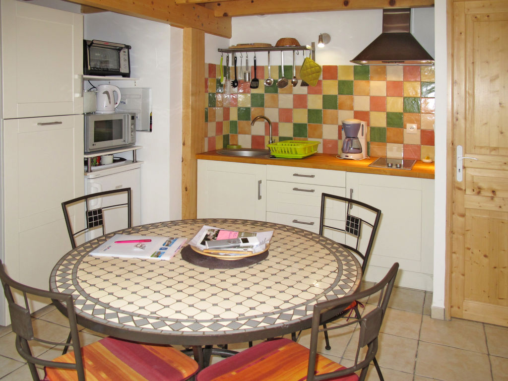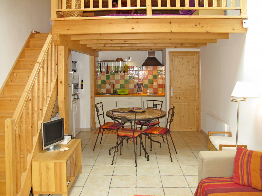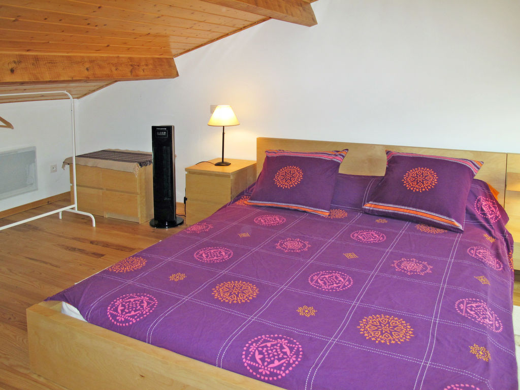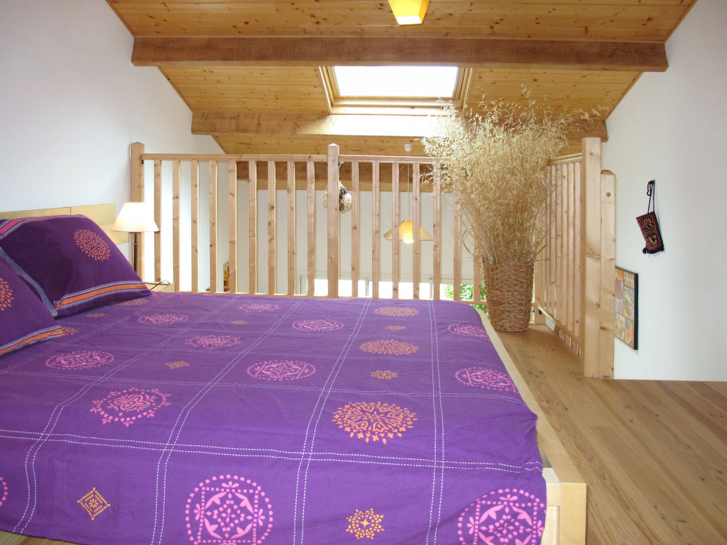 1½-Zimmer-Hausteil, 2 Etagen, ca. 50 m². Erdgeschoss: Wohn-/Schlafraum mit Doppelbettcouch, Essplatz, Kochnische (2 Ceranfelder, Mini-Backofen, Mikrowelle, Kühlschrank, Kaffeemaschine, Wasserkocher, Toaster), Terrassenausgang. Dusche/WC. Vom Wohnraum Treppe zur offenen Galerie (Dachschräge, teilweise eingeschränkte Stehhöhe) mit franz. Bett (1,60 m breit). Flexibilität bei der Bettenaufteilung: Es stehen mehr Schlafmöglichkeiten zur Verfügung als die maximal zugelassene Personenzahl, diese darf dennoch nicht überschritten werden. Inserat einer Privatperson nach Artikel 155, IV, CGI.