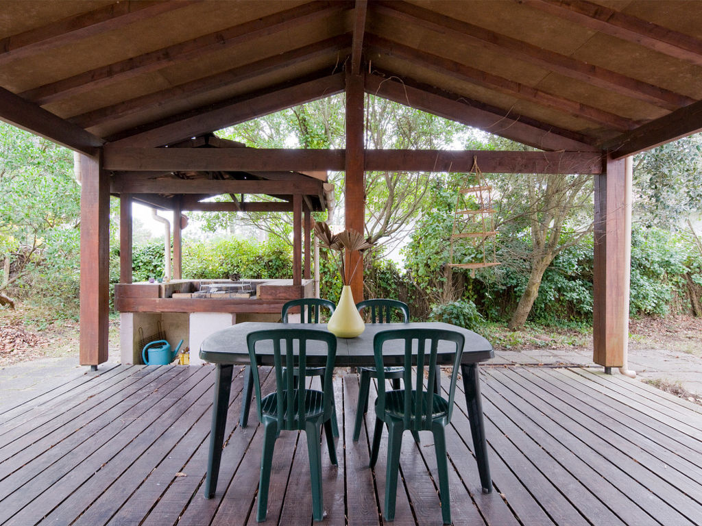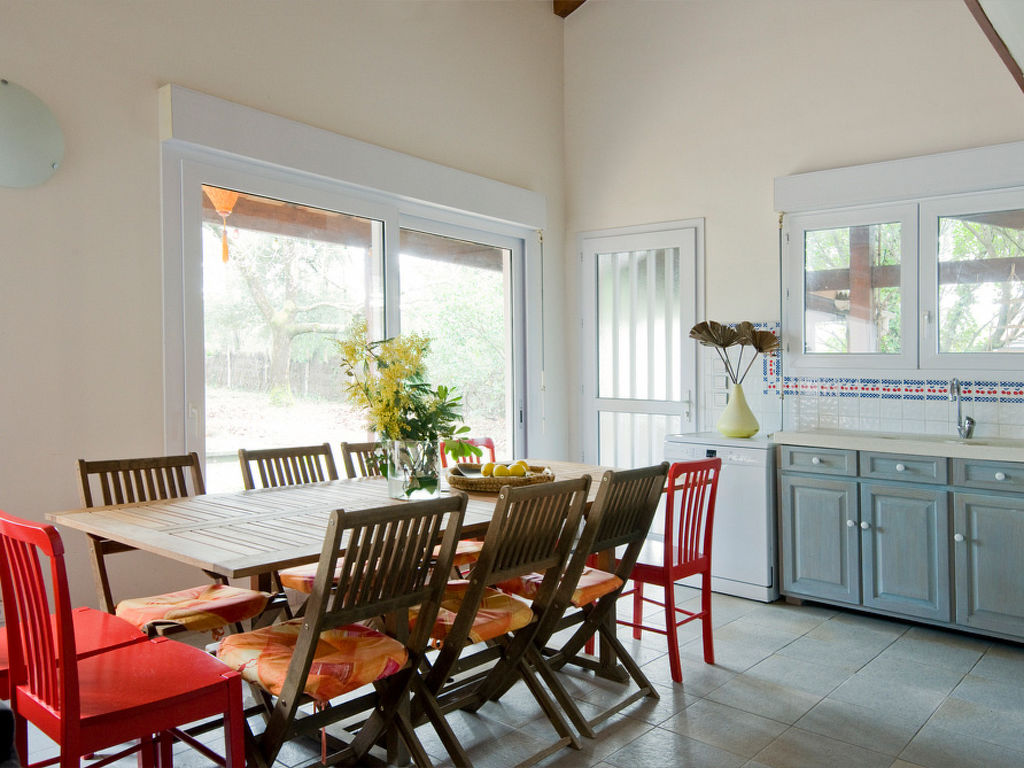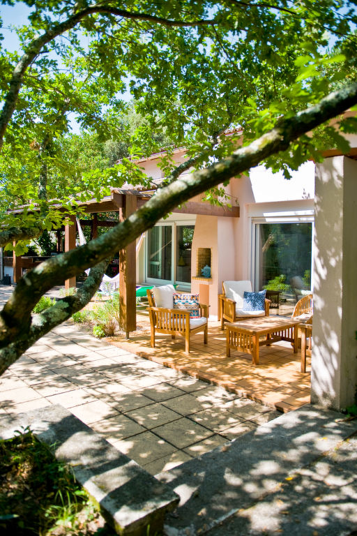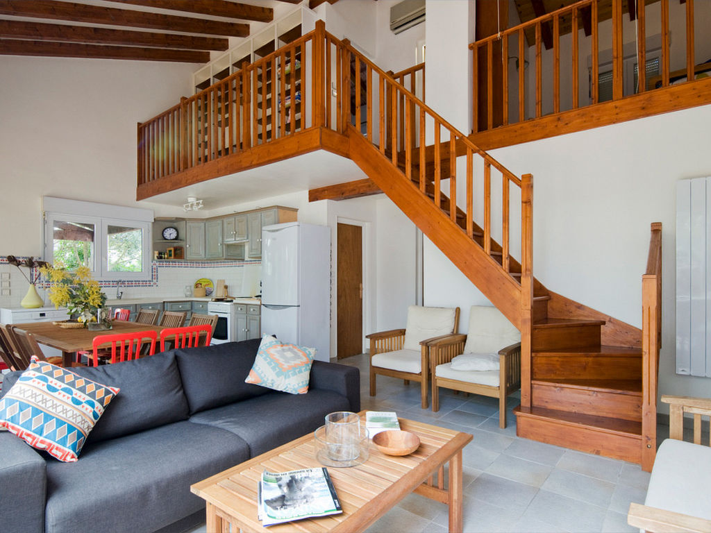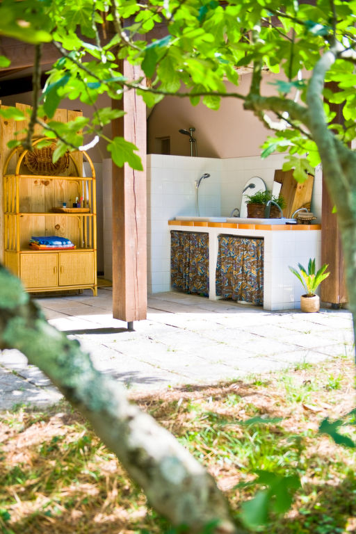 5-Zimmer-Haus, 2 Etagen, ca. 110 m². Erdgeschoss: heller Wohnraum mit hoher Decke, Sitzgruppe, offene Küche (4 Flammen, Backofen, Mikrowelle, Geschirrspüler, Kühl-/Gefrierkombination, Kaffeemaschine, Wasserkocher, Toaster), Essplatz, große Glasschiebetüren zur Terrasse. 2 Schlafzimmer, jeweils mit franz. Bett (eines davon mit Ausgang ins Freie). Dusche/WC. Vom Wohnraum Treppe ins Obergeschoss: zum Wohnraum offene Galerie mit Einzelbett mit Ausziehbett. Schlafzimmer mit 2 Etagenbetten. Bad/WC.Empfohlene Belegung: 4 Erwachsene und 4 Kinder. Maximale Belegung: 6 Erwachsenen und 4 Kinder. Inserat einer Privatperson nach Artikel 155, IV, CGI.