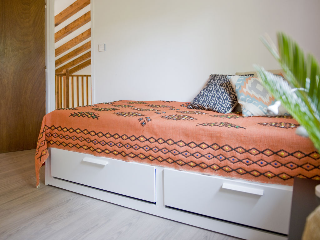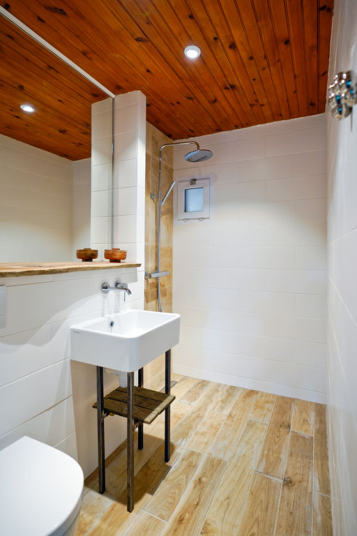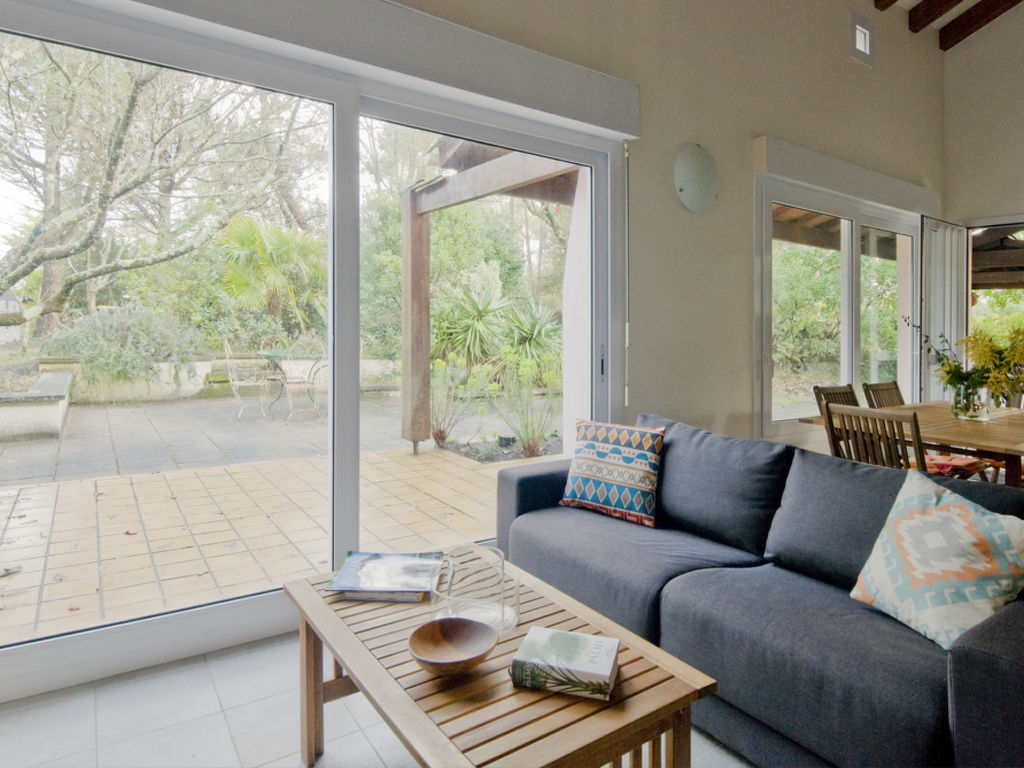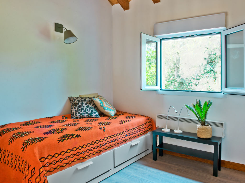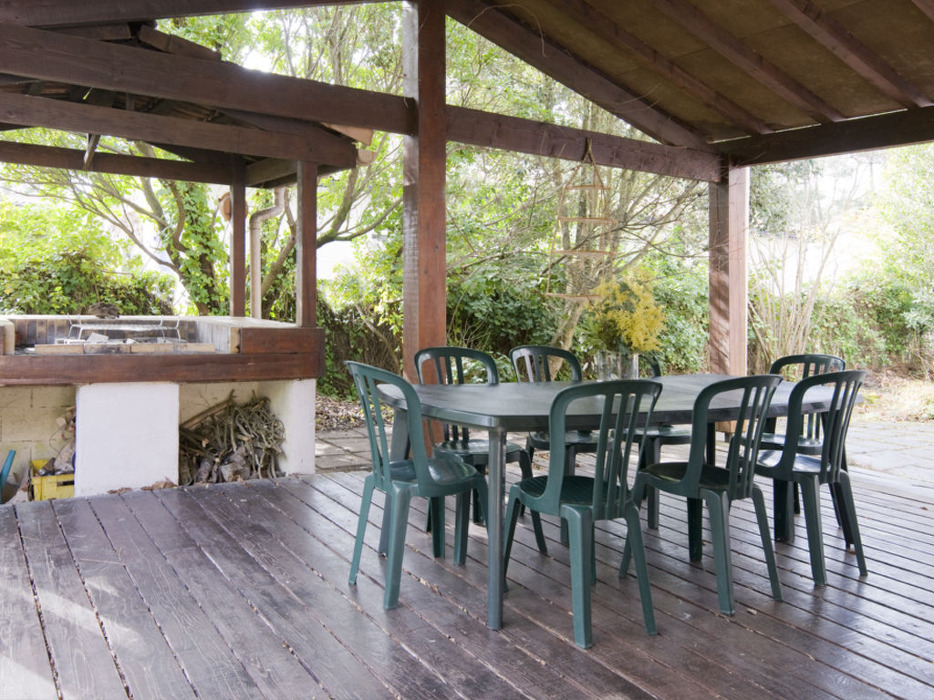 5-Zimmer-Haus, 2 Etagen, ca. 110 m². Erdgeschoss: heller Wohnraum mit hoher Decke, Sitzgruppe, offene Küche (4 Flammen, Backofen, Mikrowelle, Geschirrspüler, Kühl-/Gefrierkombination, Kaffeemaschine, Wasserkocher, Toaster), Essplatz, große Glasschiebetüren zur Terrasse. 2 Schlafzimmer, jeweils mit franz. Bett (eines davon mit Ausgang ins Freie). Dusche/WC. Vom Wohnraum Treppe ins Obergeschoss: zum Wohnraum offene Galerie mit Einzelbett mit Ausziehbett. Schlafzimmer mit 2 Etagenbetten. Bad/WC.Empfohlene Belegung: 4 Erwachsene und 4 Kinder. Maximale Belegung: 6 Erwachsenen und 4 Kinder. Inserat einer Privatperson nach Artikel 155, IV, CGI.