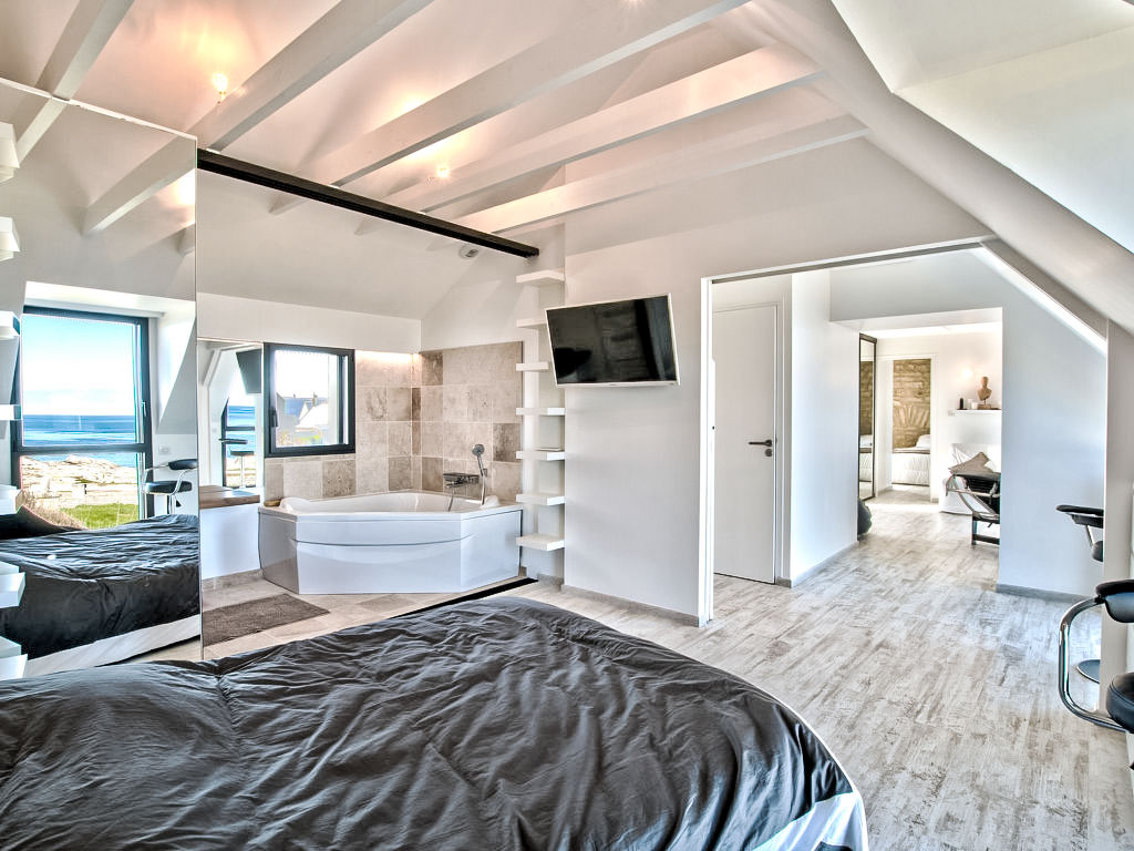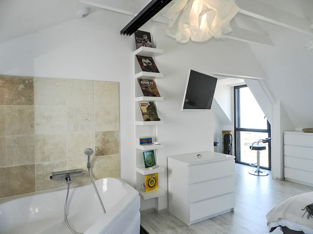 Schönes Einfamilienhaus "Le Ménez", renoviert im Jahre 2016. Im Ortsteil St Guénolé, ruhige Lage, 15 m vom Meer, in einer Sackgasse. Zur Alleinbenutzung: Grundstück (eingezäunt), wunderschöner Garten zum Entspannen. Aussendusche, Parkplatz auf dem Grundstück. Einkaufsgeschäft 200 m, Lebensmittelgeschäft, Restaurant 300 m, Sandstrand 1 km, Felsstrand 15 m. Sporthafen 300 m, Reitstall 1 km. Nahe gelegene Sehenswürdigkeiten: La Torche 4 km, Locronan 45 km, Douarnenez 47 km, Benodet Golf 25 km. Wandergebiete: Phare d'Eckmühl.