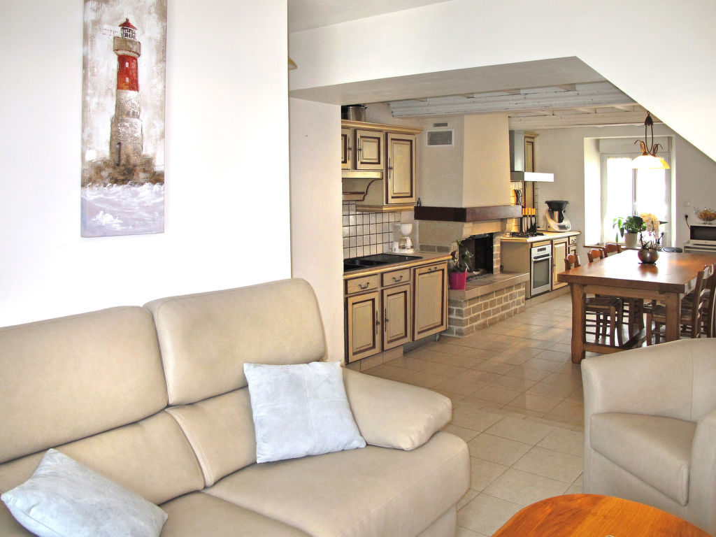 3-Zimmer-Haus, 2 Etagen, ca. 65 m². Erdgeschoss: Wohnraum mit Sitzgruppe. Über zwei Stufen zur offenen Küche (3 Flammen, 1 Platte, Backofen, Mikrowelle, Geschirrspüler, Kühl-/Gefrierkombination, Kaffeemaschine, Wasserkocher, Toaster) mit Essplatz, Kamin (Einsatz) und Ausgang ins Freie. Dusche. Sep.WC. Von der Küche Treppe ins Obergeschoss: 2 Zweibettzimmer (Betten zusammenstellbar). Sep.WC. Inserat einer Privatperson nach Artikel 155, IV, CGI.
