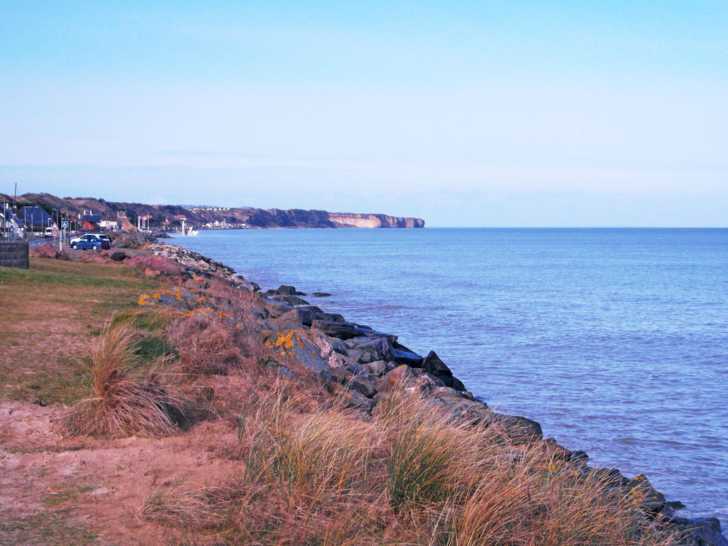 Das Haus steht zusammen mit einem weiteren Ferienhaus in einer Stichstraße, 1,6 km von der Ortsmitte von Saint Laurent-sur-Mer. Direkter Zugang zum Sandstrand über Treppe (5 Stufen). Zum Omaha Beach 1,4 km. Nächste Einkaufsmöglichkeit 1,5 km, Supermarkt 11 km. Ca. 1200 m² großes, naturbelassenes, teilweise von Zaun umgebenes Grundstück (Einfahrtstor) sowie Abstellraum für Fahrräder zur gemeinsamen Nutzung mit den anderen Feriengästen. Zum Ferienhaus gehört eine Terrasse mit Mobiliar, 2 Liegestühlen, Sonnenschirm und gemauertem Grill. Parkmöglichkeit für 2 Pkw auf dem Grundstück. Angenehme, feriengerechte Einrichtung. Fliesen- und Linoleumboden. 2x TV. DVD, CD, Radio. Internetzugang (über Netzwerkkabel, inklusive, Kabel mitzubringen). Waschmaschine, Bügeleisen/-brett. Elektroheizung.