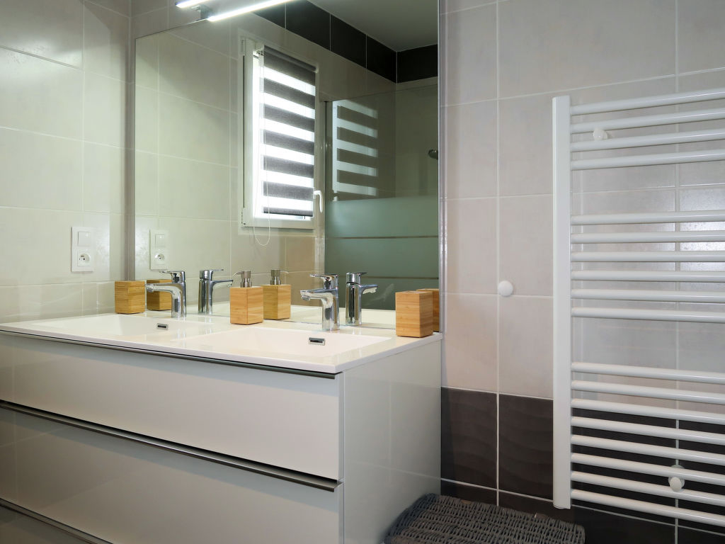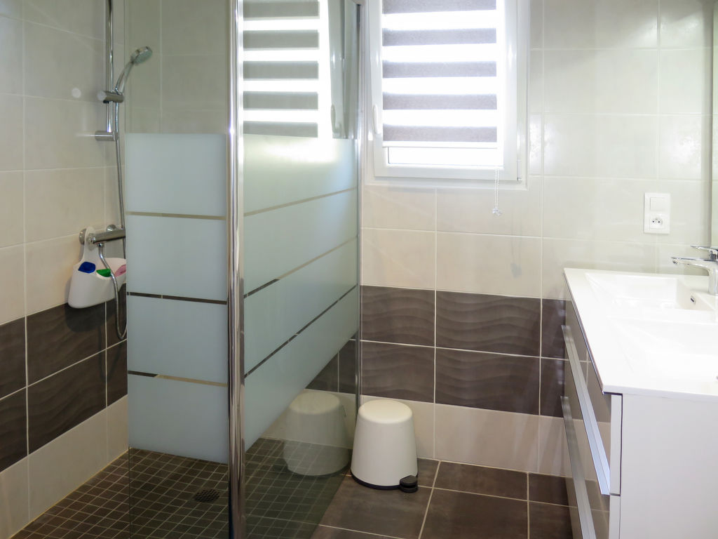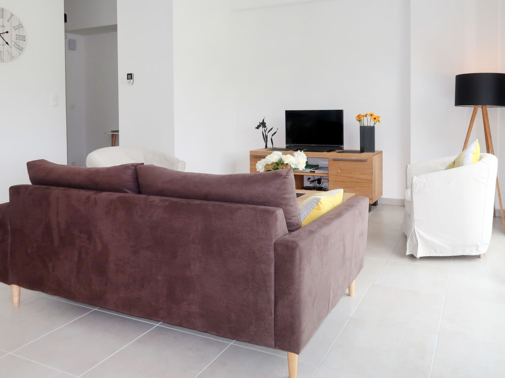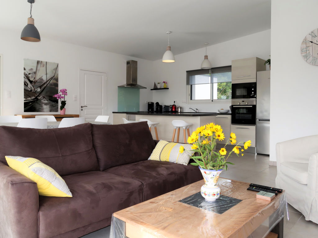 4-Zimmer-Haus, ca. 95 m². Wohnraum mit Sitzgruppe, Essplatz und Terrassenausgang. Zum Wohnraum offene Küche (3 Induktionsfelder, Backofen, Mikrowelle, Geschirrspüler, Kühl-/Gefrierkombination, Kaffeemaschine, Kaffeekapselmaschine, Wasserkocher, Toaster) mit Essplatz für 3 Personen (Barhocker). 2 Schlafzimmer, jeweils mit franz. Bett. Schlafzimmer mit franz. Bett (1,60 m breit). Dusche. Sep.WC. Flexibilität bei der Bettenaufteilung: Es stehen mehr Schlafmöglichkeiten zur Verfügung als die maximal zugelassene Personenzahl, diese darf dennoch nicht überschritten werden. Inserat einer Privatperson nach Artikel 155, IV, CGI.