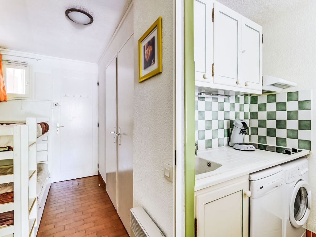 1-Zimmer-Studio 32 m2. Objekt geeignet für 2 Erwachsene + 2 Kinder. Zweckmässig und komfortabel eingerichtet: Wohn-/Schlafzimmer mit Panoramafenster mit 1 Doppeldiwanbett (140 cm), TV (Flachbildschirm). Ausgang zur Terrasse, zur Loggia, Richtung Osten und Richtung Süden. Eingang mit 1 x 2 Etagenbetten (90 cm). Offene Küche (Backofen, Geschirrspüler, 2 Glaskeramikherd Platten, Mikrowelle, Tiefkühler, elektrische Kaffeemaschine, Kapseln für die Kaffeemaschine (SENSEO) extra). Bad, sep. WC. E-Heizung. Gartensitzplatz 13 m2. Terrassenmöbel. Zur Verfügung: Waschmaschine. Internet (Wireless LAN, extra). Parkplatz Nr. P118. Bitte beachten: geeignet für Familien. Rauchmelder. 2 Fahrräder stehen in der Wohnung zur Verfügung. Inserat einer Privatperson nach Artikel 155, IV, CGI.
