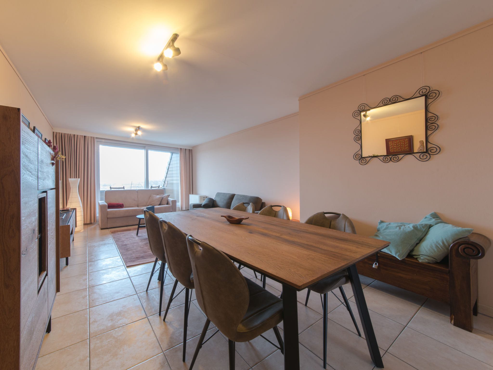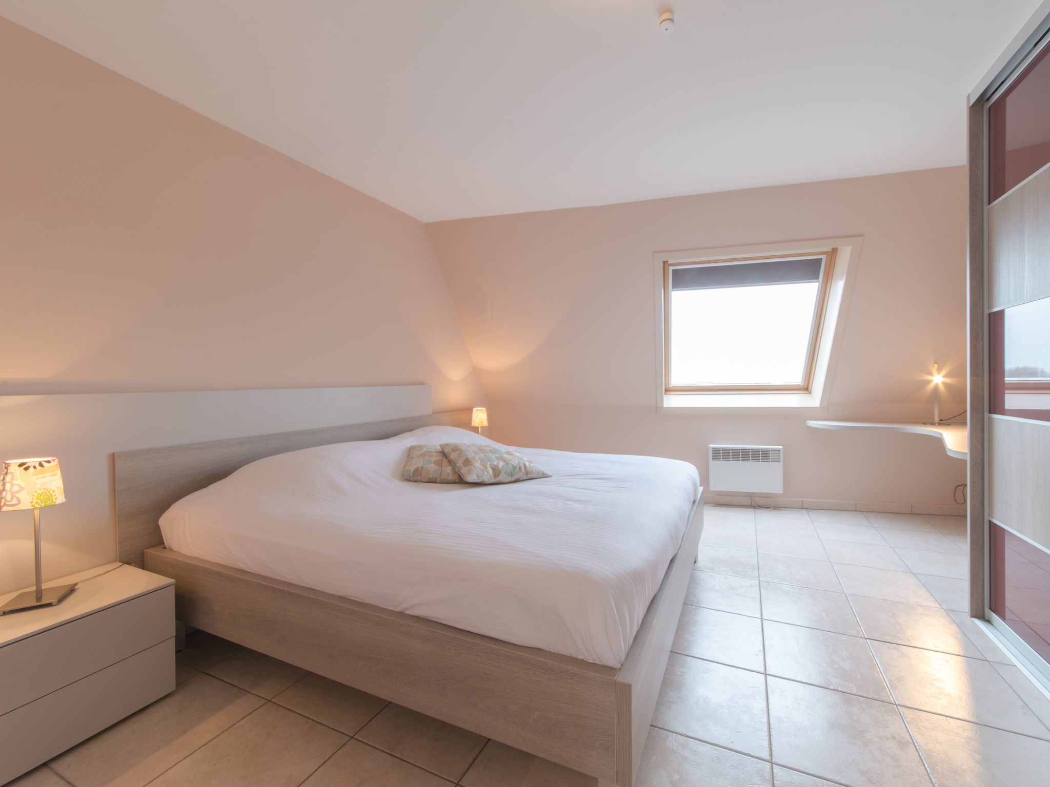 "Meiboom 503", 3-Zimmer-Wohnung 120 m2 auf 2 Stockwerken im 5. Stock. Geräumig, zweckmässig eingerichtet: offenes Wohn-/Esszimmer mit Esstisch, TV und Internationale TV-Sender (Flachbildschirm), DVD. Küche (Geschirrspüler, 4 Glaskeramikherd Platten, Tiefkühler, elektrische Kaffeemaschine, Kombinationsmikrowelle) mit Esstisch. Sep. WC. E-Heizung. Obergeschoss: 1 Zimmer mit 1 Bett (180 cm, Länge 200 cm). 1 Kinderzimmer mit 1 x 2 Etagenbetten (90 cm, Länge 200 cm). Bad/Dusche, sep. WC. Balkon 4 m2, Nordwestlage. Sicht auf das Meer und die Dünen. Zur Verfügung: Waschmaschine, Wäschetrockner, Kinderhochstuhl, Haartrockner. Internet (Wireless LAN, gratis). Garage Nr. 10 (1 Auto) in 80 m. Bitte beachten: Rauchmelder, Feuerlöscher.