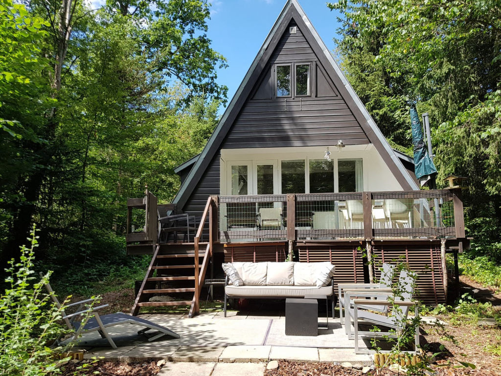 "Frui Cotidie", 3-Zimmer-Haus 75 m2 auf 2 Stockwerken. Abgeschrägt, komfortabel eingerichtet: Wohn-/Esszimmer mit Esstisch, Flachbildschirm, CD und DVD. Ausgang zum Balkon, zur Terrasse. Offene Küche (4 Kochplatten, Geschirrspüler, Mikrowelle). Dusche/WC. Heizung. Obergeschoss: (steile Treppe) 1 abgeschrägtes Doppelzimmer mit 2 Betten (90 cm, Länge 200 cm). 1 abgeschrägtes Doppelzimmer mit 1 Doppelbett (1 x 160 cm, Länge 200 cm). Balkon Terrasse. Terrassenmöbel, Balkonmöbel. Sicht auf den Wald. Zur Verfügung: Kinderhochstuhl, Babybett, Haartrockner. Internet (Wireless LAN, gratis). Blu-Ray Player, iPod docking station. Parkplatz (2 Autos) beim Haus. Bitte beachten: Nichtraucher-Haus. Das Haus hat einen Gaskamin.