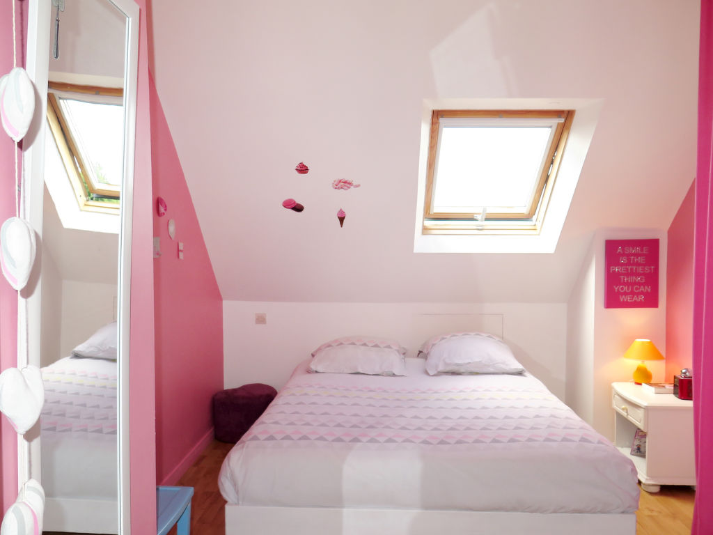 Das Ferienhaus LE CEDRE BLEU steht im Wohngebiet 'Les Rosaires', 1,3 km vom gleichnamigen, schönen Sandstrand entfernt. Ortsmitte von Plérin-sur-Mer 3 km. Nächste Einkaufsmöglichkeit und Restaurant 1,5 km, Supermarkt 2 km. Ca. 1900 m² großes, teils durch Hecke, Zaun und Mauer abgeschlossenes Gartengrundstück mit Bäumen, davon ca. 1200 m² Rasenfläche hinter dem Haus mit möbliertem Freisitz und Kinderspielgeräten. Vor dem Haus gekiester Hof und schmale Terrasse mit Mobiliar. 4 Sonnenliegen, 2 Liegestühle, 2 Sonnenschirme und transportabler Grill. Parkmöglichkeit für 4 PKW auf dem Grundstück. Angenehme Einrichtung in hellen, freundlichen Farben. Fliesen- und Laminatboden. 2x TV. Stereoanlage, CD, Radio. Internetzugang (WLAN, inklusive). Abstellraum mit Waschmaschine, Trockner, Bügeleisen/-brett. Elektroheizung. Hinweis: Rauchen ist im Haus nicht gestattet.