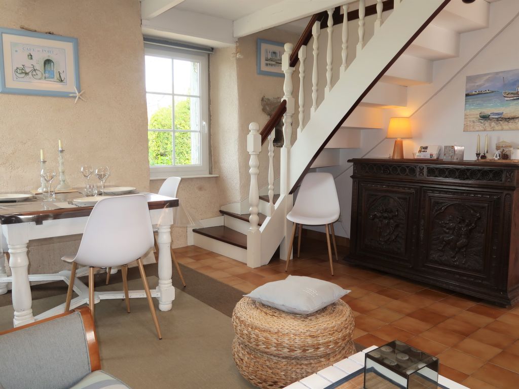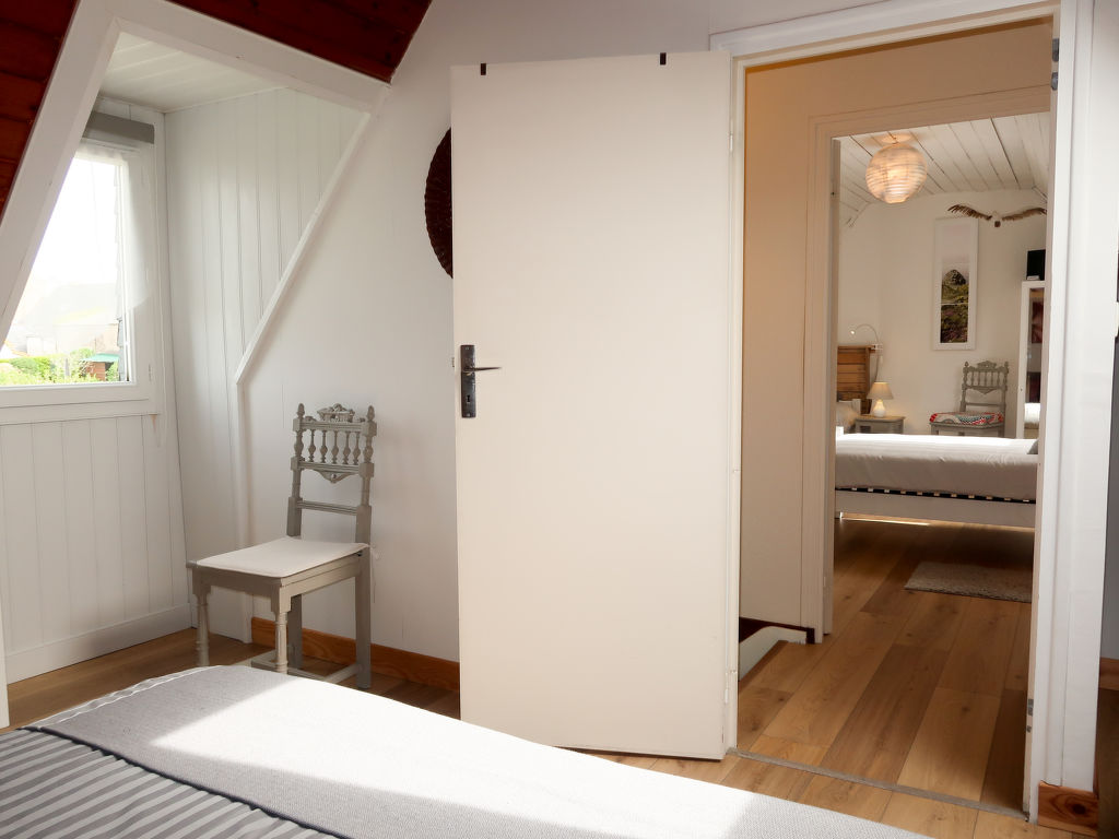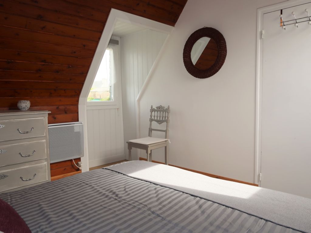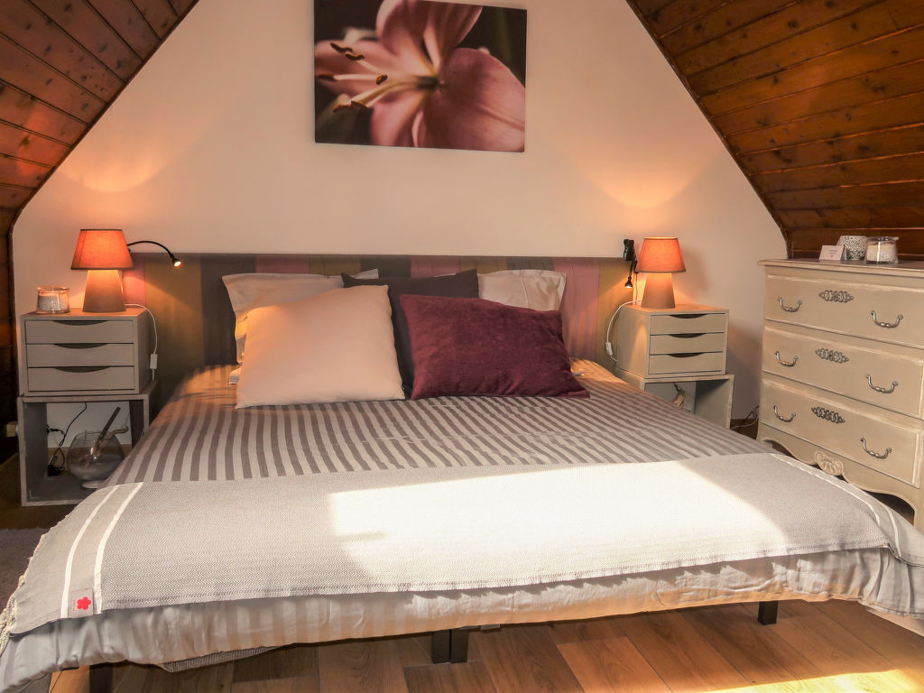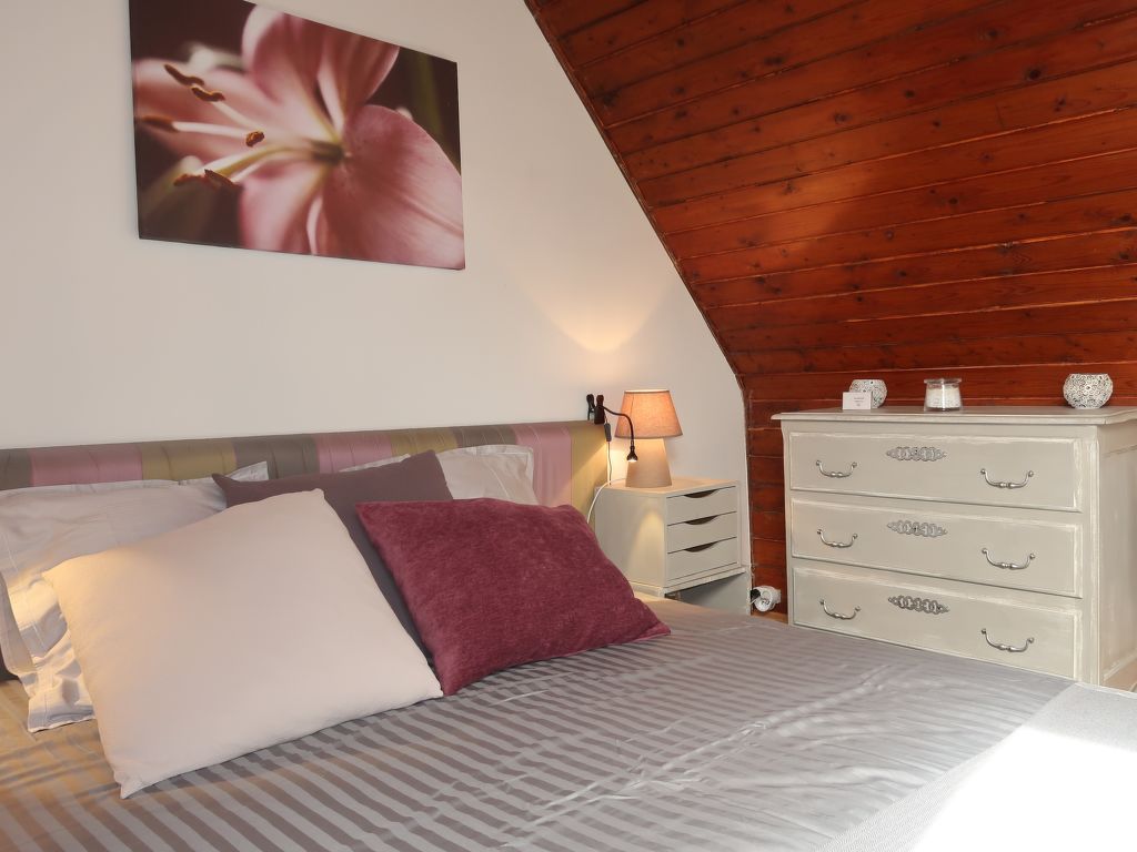 3-Zimmer-Haus, 2 Etagen, ca. 70 m². Erdgeschoss: Diele. Wohnraum mit Sitzgruppe, Kaminofen, Essplatz und Gartenausgang. Küche (4 Flammen, Minibackofen, Mikrowelle, Geschirrspüler, Kühl-/Gefrierkombination, Kaffeemaschine, Wasserkocher, Toaster) mit Essplatz für 2 Personen (2 Hocker). Dusche. Sep.WC. Vom Wohnraum Treppe ins Obergeschoss (Dachschräge): Zweibettzimmer. Schlafzimmer mit Doppelbett. Inserat einer Privatperson nach Artikel 155, IV, CGI.