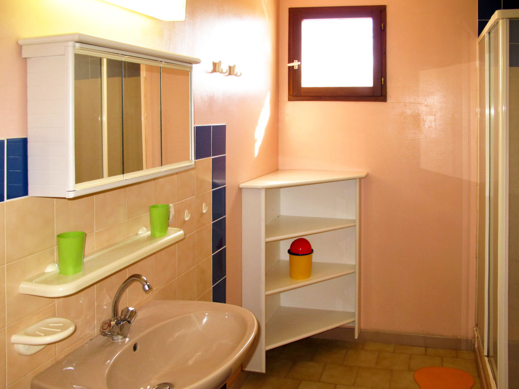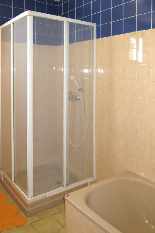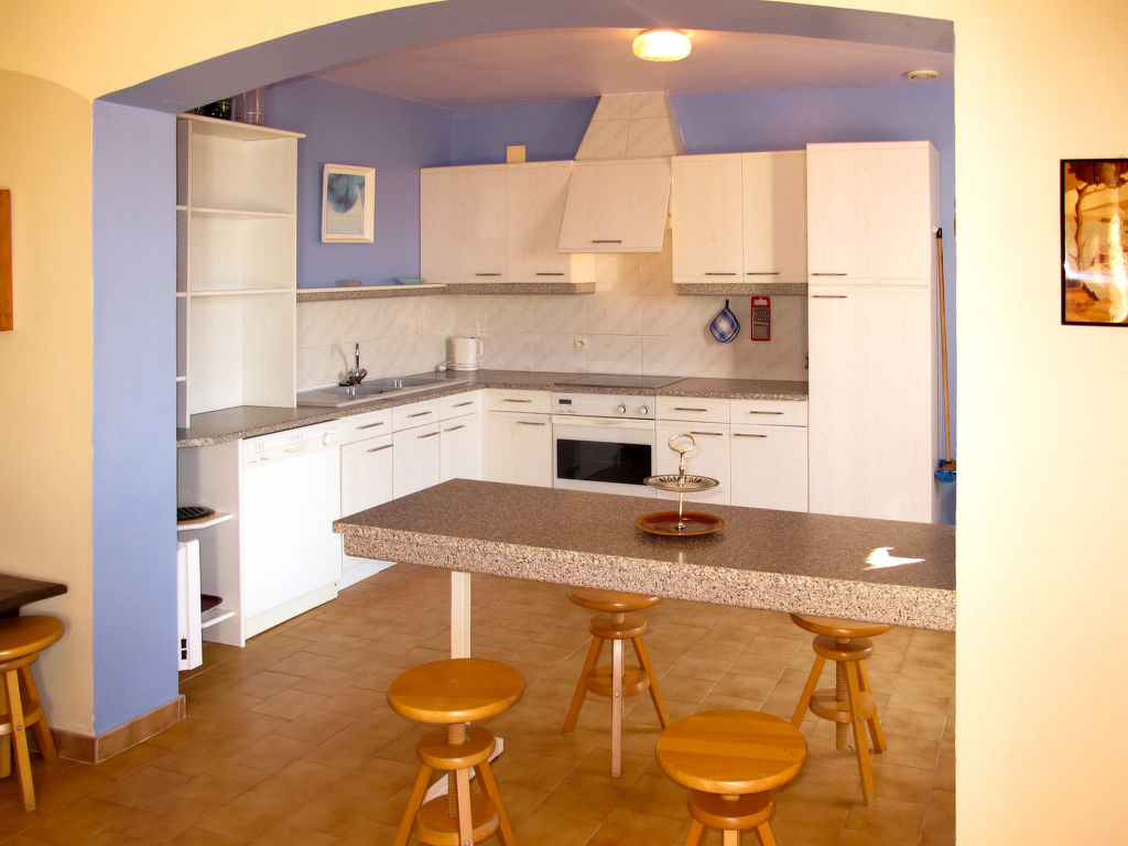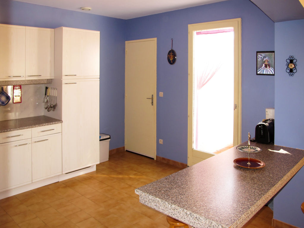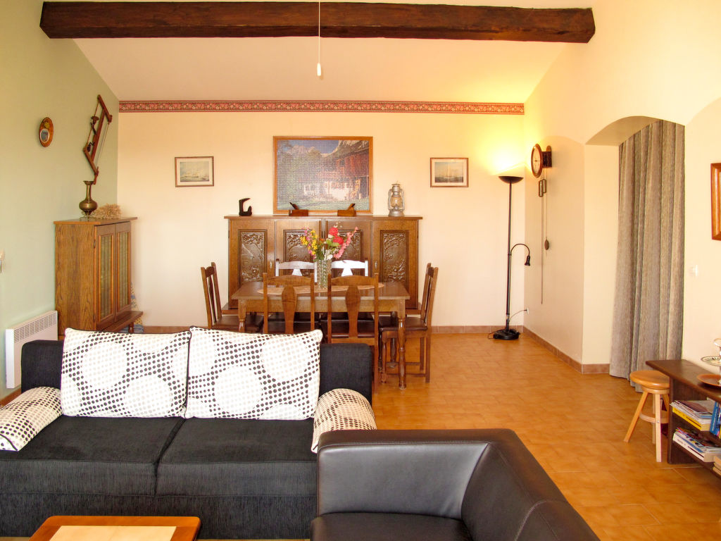 3-Zimmer-Haus, ca. 106 m². Über Außentreppe in Wohn-/Schlafraum (ca. 35 m²) mit Sitzgruppe/Doppelbettcouch, Kamin (nur Dekoration), Essplatz, 2 Terrassenausgänge. Zum Wohnraum offene Küche (4 Ceranfelder, Backofen, Geschirrspüler, Kühl-/Gefrierkombination, Kaffeemaschine, Wasserkocher, Toaster) mit Essplatz. Schlafzimmer mit franz. Bett. Zweibettzimmer. Bad/Dusche. Sep.WC. Inserat einer Privatperson nach Artikel 155, IV, CGI.