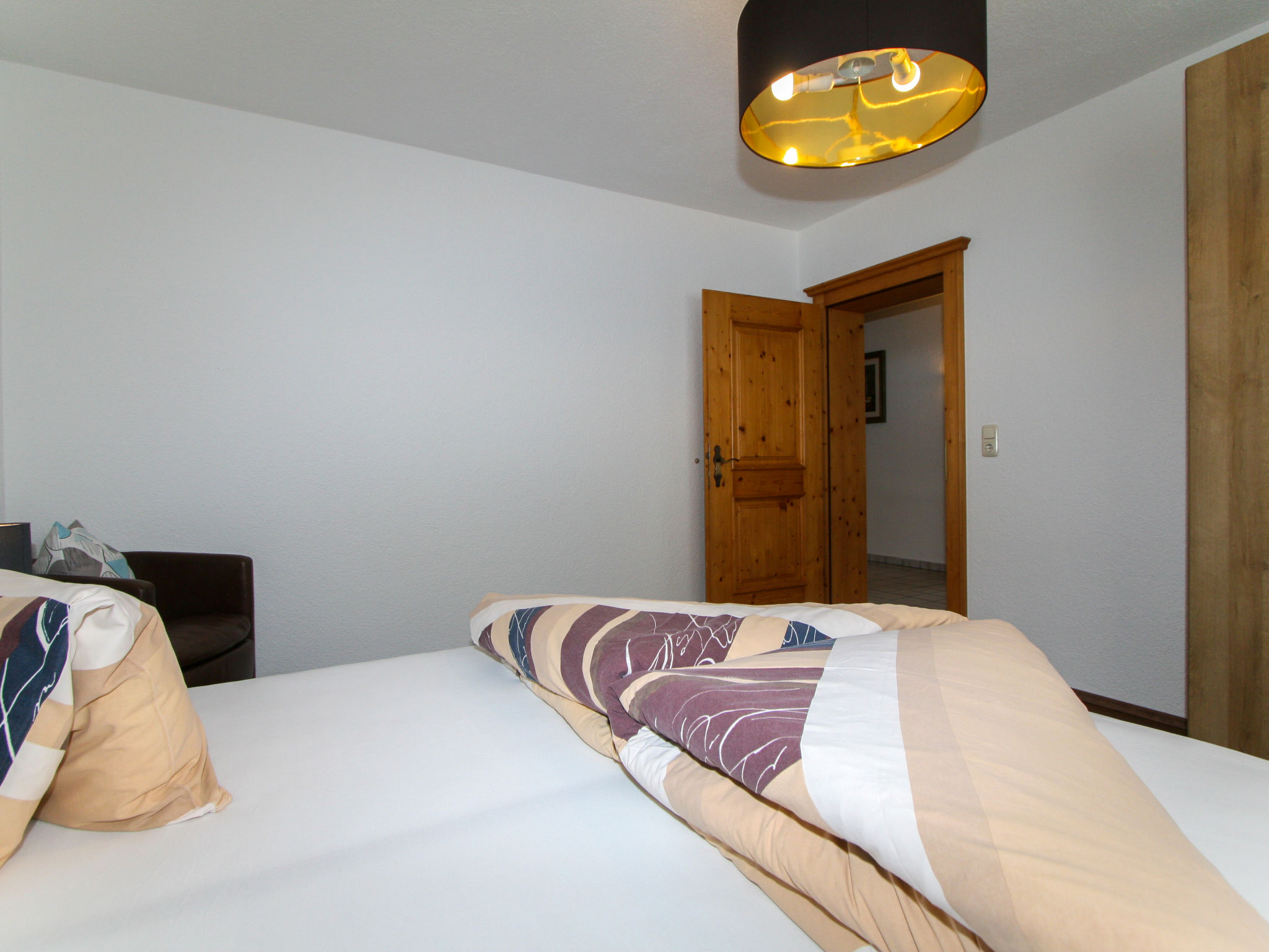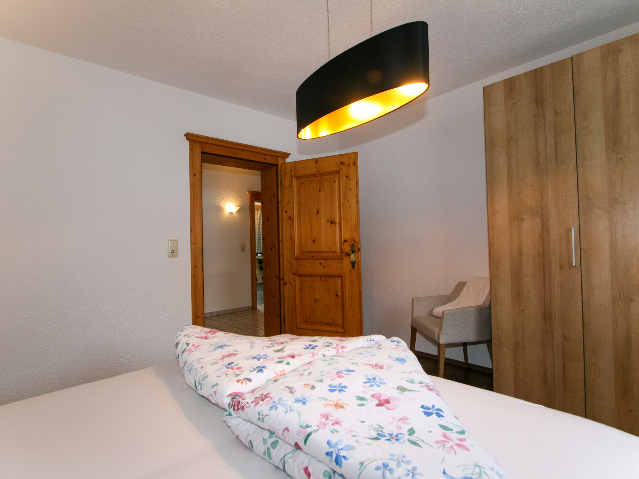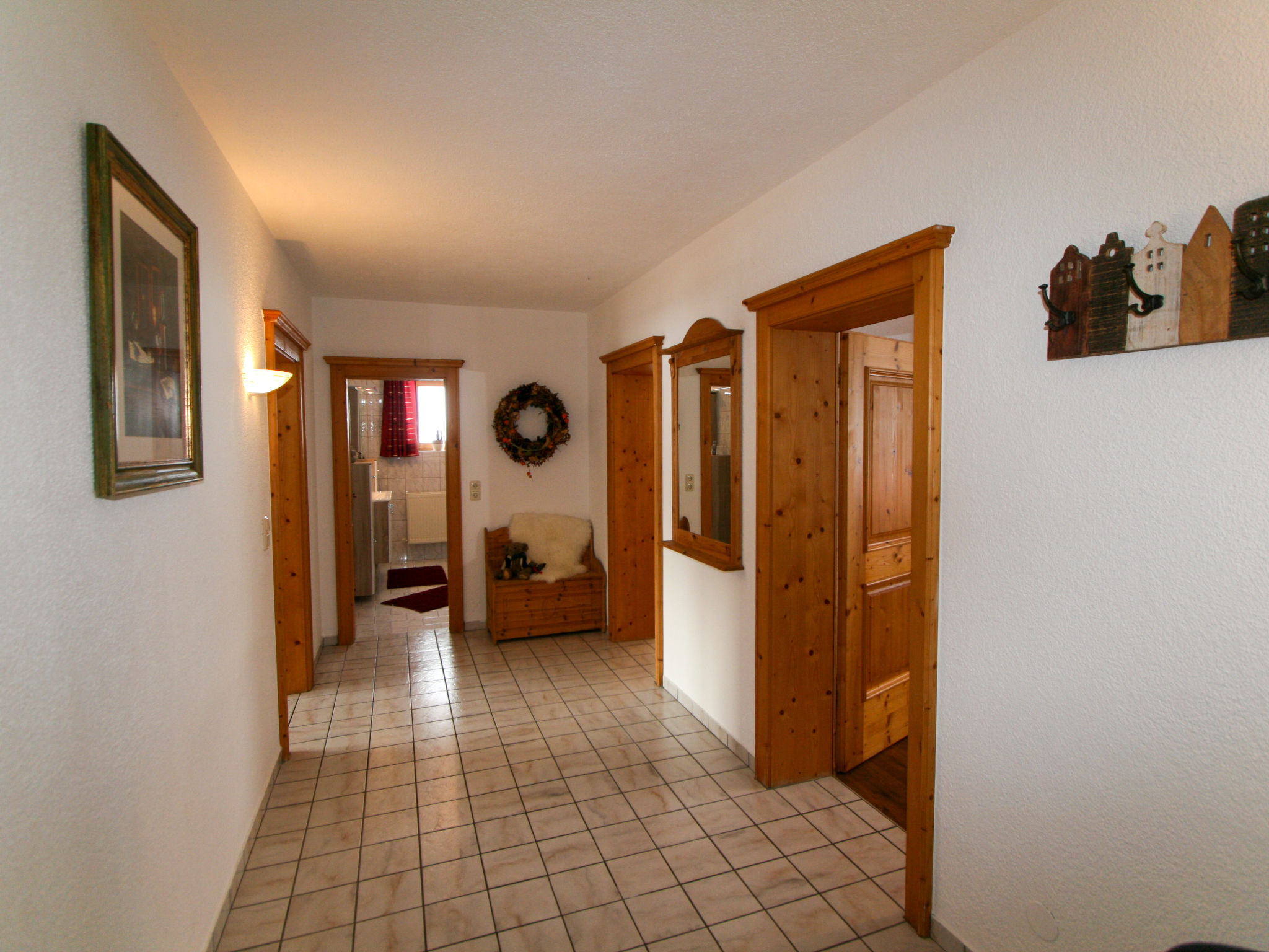 3-Zimmer-Wohnung, 2. Etage, ca. 65 m². Flur mit Garderobe. Wohnküche (4 Platten, Backofen, Geschirrspüler, Kaffeemaschine, Wasserkocher, Toaster) mit Essplatz (Eckbank), Bettcouch, Balkonausgang. 2 Doppelzimmer, eines davon mit zusätzlichem Schlafsessel möglich. Dusche/WC. Bei Belegung mit weniger Personen als der maximalen Personenzahl stehen nicht alle Wohneinheiten zur Verfügung.