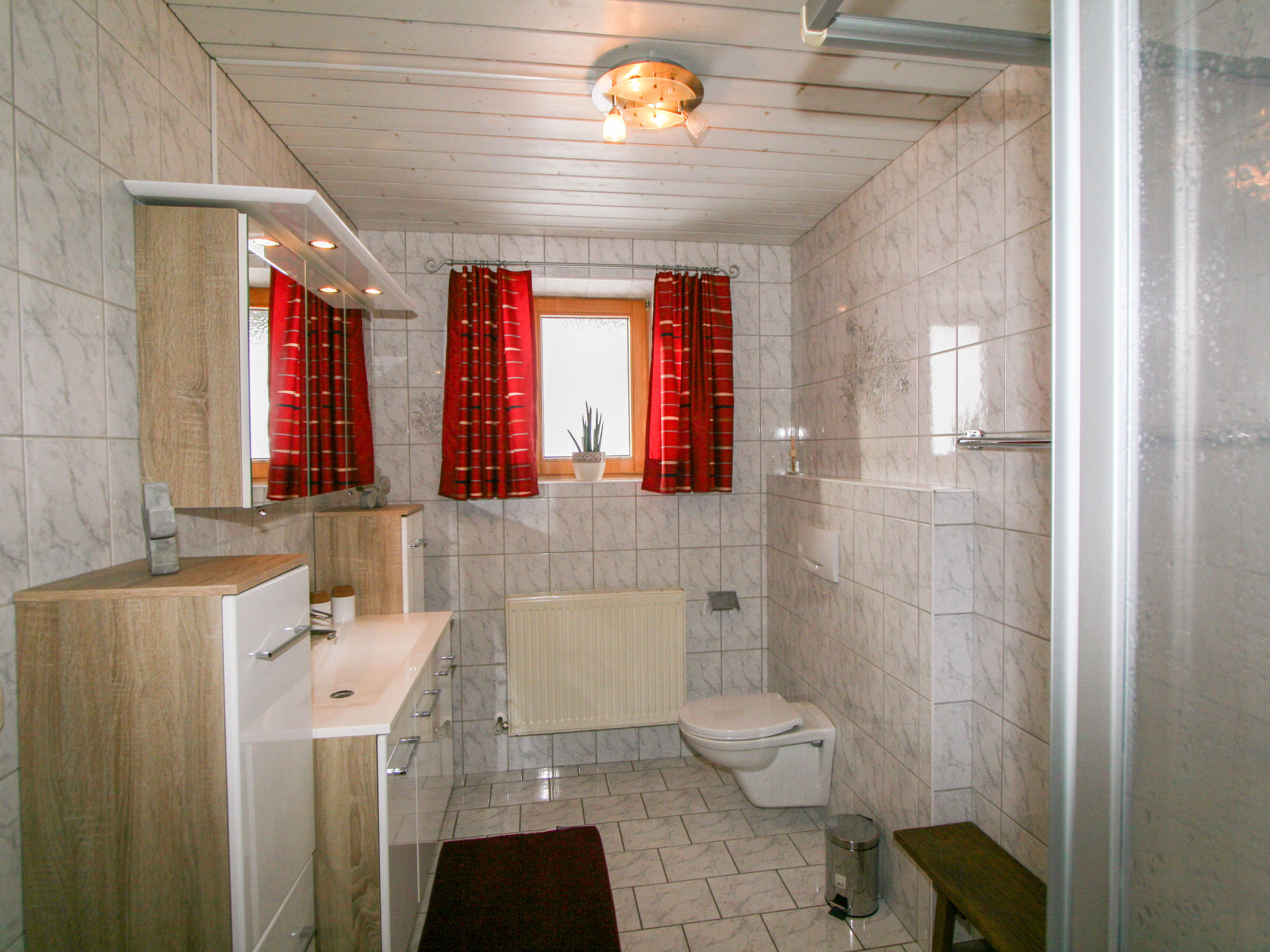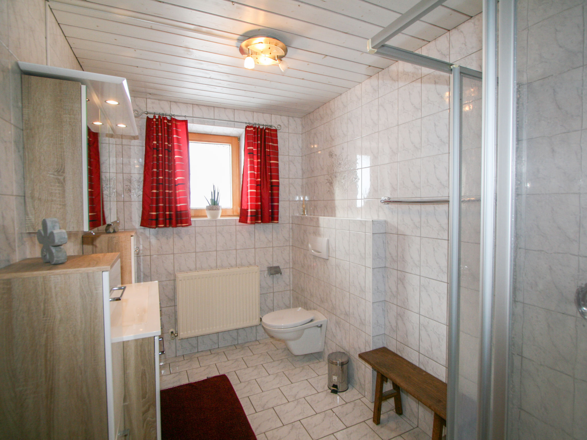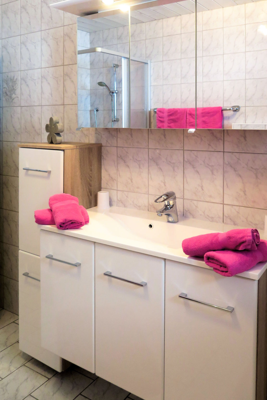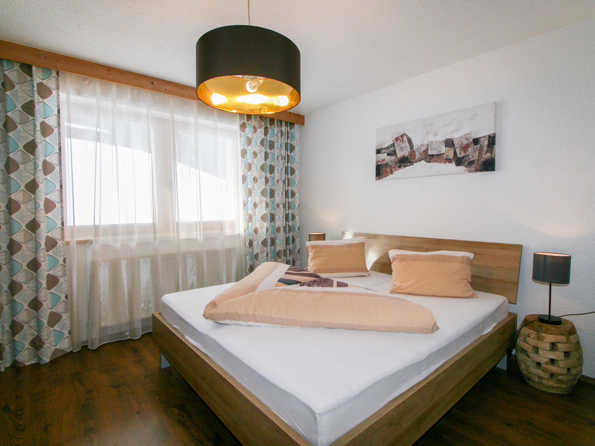3-Zimmer-Wohnung, 2. Etage, ca. 65 m². Flur mit Garderobe. Wohnküche (4 Platten, Backofen, Geschirrspüler, Kaffeemaschine, Wasserkocher, Toaster) mit Essplatz (Eckbank), Bettcouch, Balkonausgang. 2 Doppelzimmer, eines davon mit zusätzlichem Schlafsessel möglich. Dusche/WC. Bei Belegung mit weniger Personen als der maximalen Personenzahl stehen nicht alle Wohneinheiten zur Verfügung.