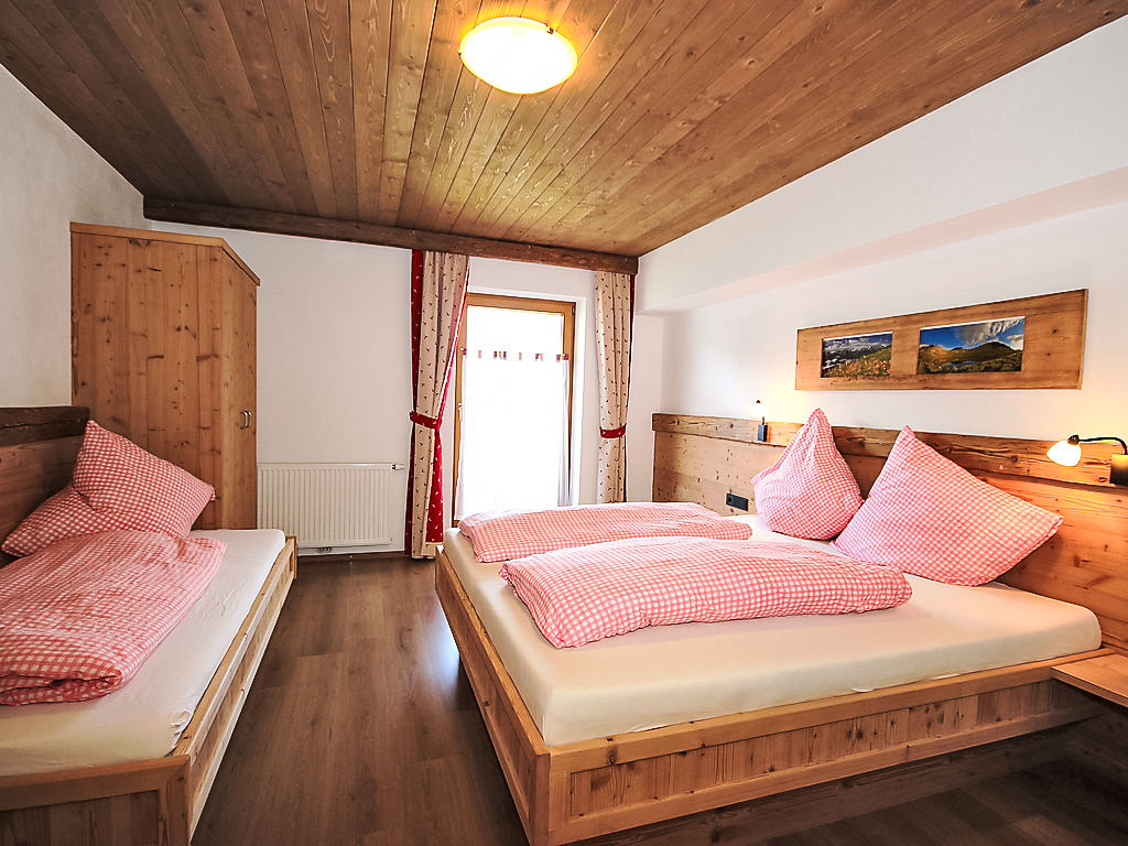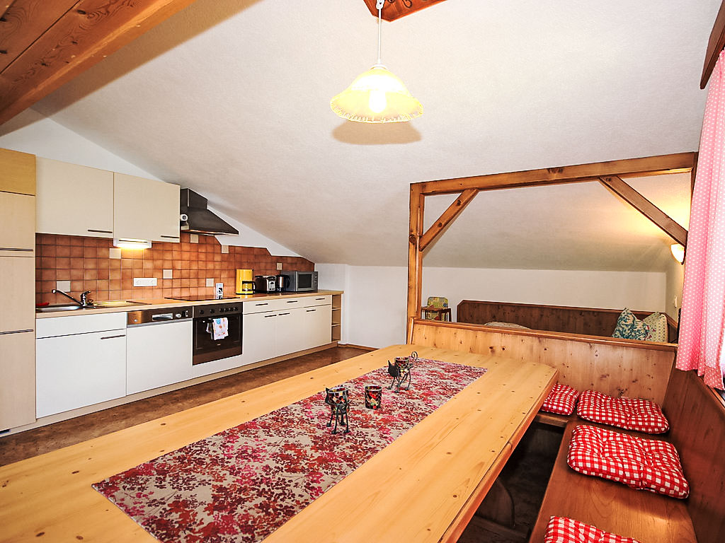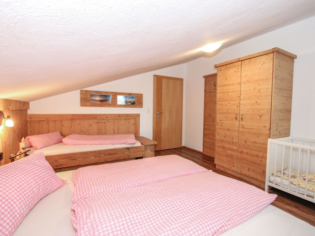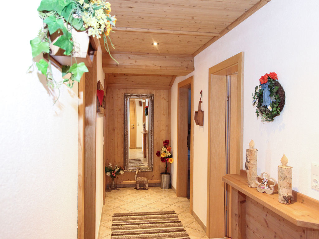 4-Zimmer-Wohnung 105 m2 im 2. Stock. Geräumig, teilweise abgeschrägt, komfortabel und gemütlich eingerichtet: Eingang. 1 Zimmer mit 1 Bett und 1 Doppelbett. Ausgang zum Balkon. 2 Zimmer, jedes Zimmer mit 1 Bett und 1 Doppelbett. Grosse Wohnküche (Backofen, Geschirrspüler, 4 Glaskeramikherd Platten, Mikrowelle, Tiefkühler, elektrische Kaffeemaschine) mit 1 Diwanbett und Sat-TV (Flachbildschirm). Ausgang zum Balkon. Dusche, Dusche/WC, sep. WC. Grosser Balkon. Balkonmöbel. Herrliche Panoramasicht auf die Berge, das Tal und die Landschaft. Zur Verfügung: Fliegengitter, Haartrockner. Internet (Wireless LAN). Einbaumöbel vom Tischler. Bei Belegung mit weniger Personen als der maximalen Personenzahl stehen nicht alle Schlafzimmer zur Verfügung.