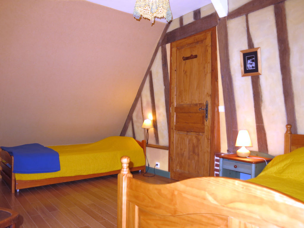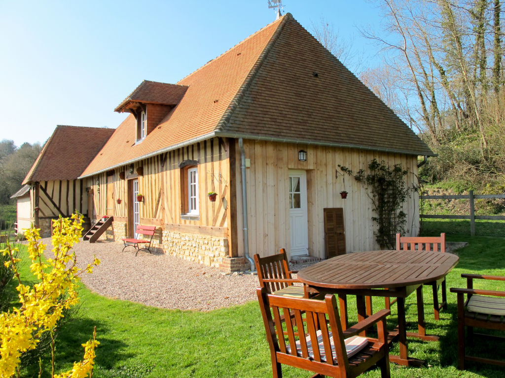 Charmantes Fachwerkhaus in erhöhter Lage, mit schönem Blick ins Tal, 1 km von der Ortsmitte von Courtonne-la-Meurdrac mit Einkaufsmöglichkeit. Zufahrt ca. 200 m über Feldweg (Stichstraße). Ca. 250 m² großes, umzäuntes Gartengrundstück mit Kies- und Rasenfläche. Gartenmöbel. Grill. Parkmöglichkeit auf dem Grundstück. Der Besitzer, der einige Kühe und Hühner hält, bewohnt ein Haus auf dem Nachbargrundstück, auf Anfrage können dort 2 Gästezimmer gemietet werden. Gemütliche und gepflegte Einrichtung in freundlichen Farben. Fliesen- und Parkettböden. Sat-TV (deutsche Programme), DVD, Stereoanlage. Internetzugang (WLAN, inklusive). Waschmaschine, Bügeleisen/-brett. Abstellraum (Außenzugang). Elektroheizung.