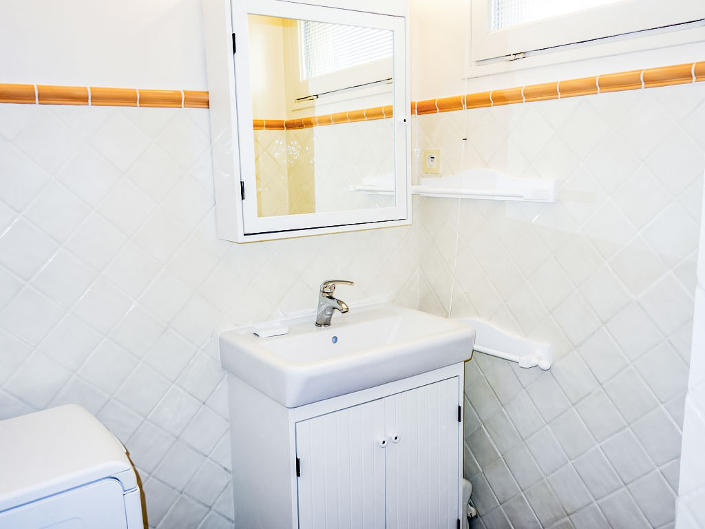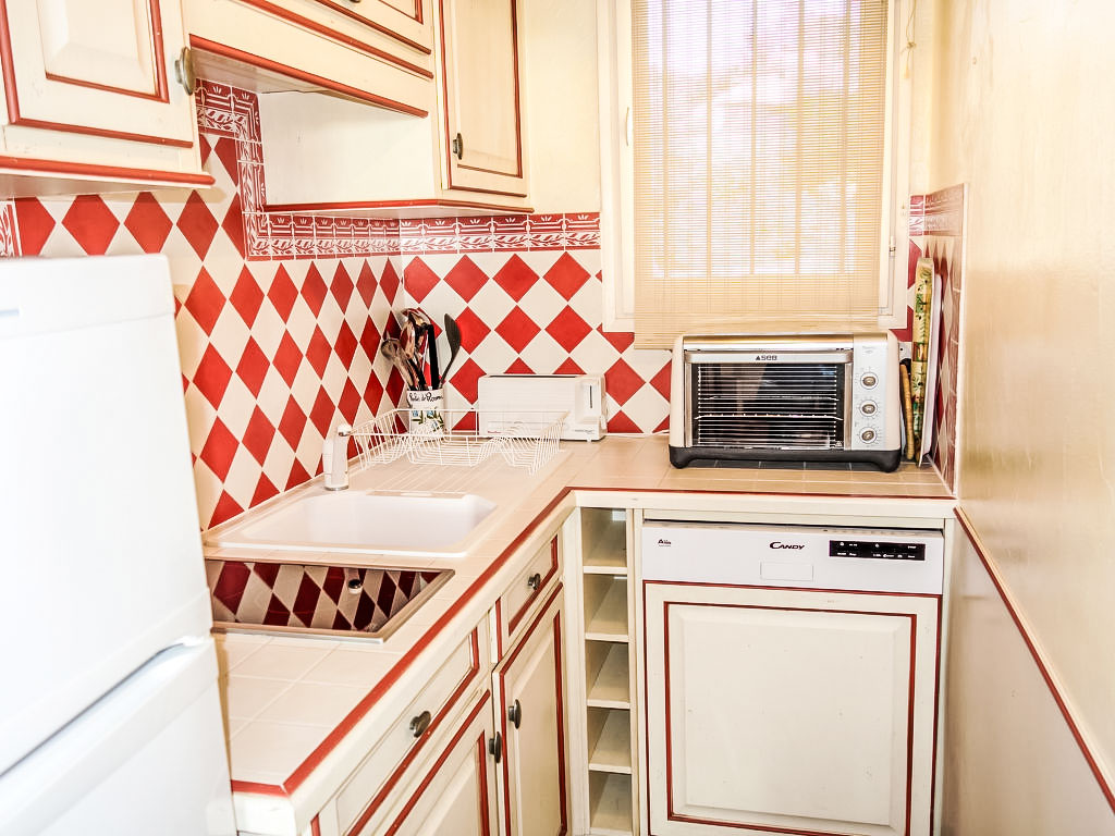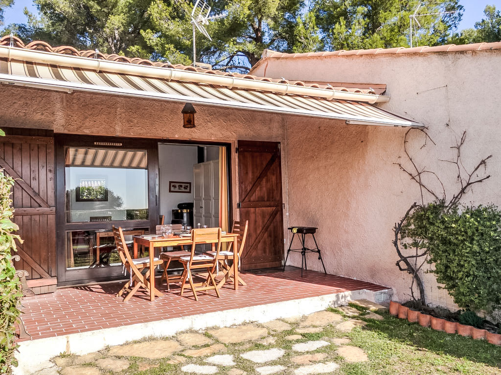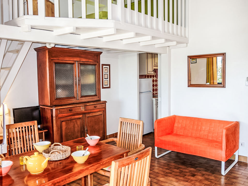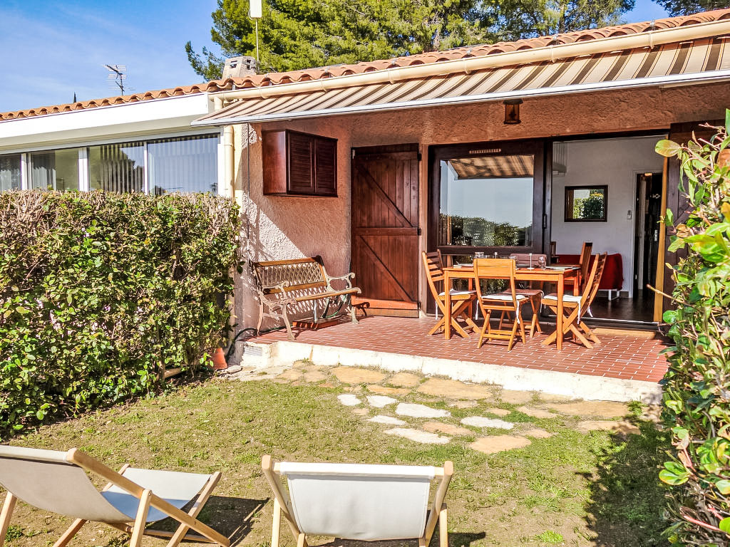1-Zimmer-Reihenhaus 29 m2 auf 2 Stockwerken. Schön eingerichtet: Eingang, ohne Fenster mit 1 x 2 Etagenbetten (90 cm, Länge 200 cm). Wohn-/Esszimmer mit TV. Ausgang zum Garten, zur Terrasse. Galerie abgeschrägtes, offenes kleines, Deckenhöhe 125 - 157 cm mit Dachfenster mit 1 franz. Bett (160 cm, Länge 200 cm). Küche (Mini-Backofen, Geschirrspüler, 2 Glaskeramikherd Platten, Toaster, Tiefkühler, elektrische Kaffeemaschine). Dusche/WC. E-Heizung. Terrasse 10 m2, überdacht, Südlage, Gartensitzplatz 25 m2. Terrassenmöbel, Elektrogrill. Eingeschränkte Fernsicht auf das Meer. Zur Verfügung: Waschmaschine, Bügeleisen. Internet (Wireless LAN, extra). Parkplatz Nr. 28. Bitte beachten: Nichtraucher-Unterkunft. TV nur FR. Rauchmelder. Die Dachgalerie ist 4 m² groß. Inserat einer Privatperson nach Artikel 155, IV, CGI.