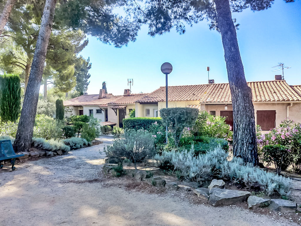 Residenz "Les Restanques", umgeben von Bäumen. Am Ortsrand, erhöhte Lage in einem Wohnquartier, 500 m vom Meer, im Grünen, in einer Fussgängerzone. Lebensmittelgeschäft, Restaurant, Bäckerei 350 m, Sandstrand 1.5 km, Steinstrand 500 m. Golfplatz (18 Loch) 16 km. Wandergebiete: Sainte Baume, Sainte Victoire, Calanques Port-Cros, Porquerolles, Ile verte, Embiez, Figuerolles, Cassis. Die Residenz wird durch elektrische Tore geschlossen. Die Schlüsselübergabe findet bei der Agentur Interhome in Saint Cyr Sur Mer statt, 8 km.