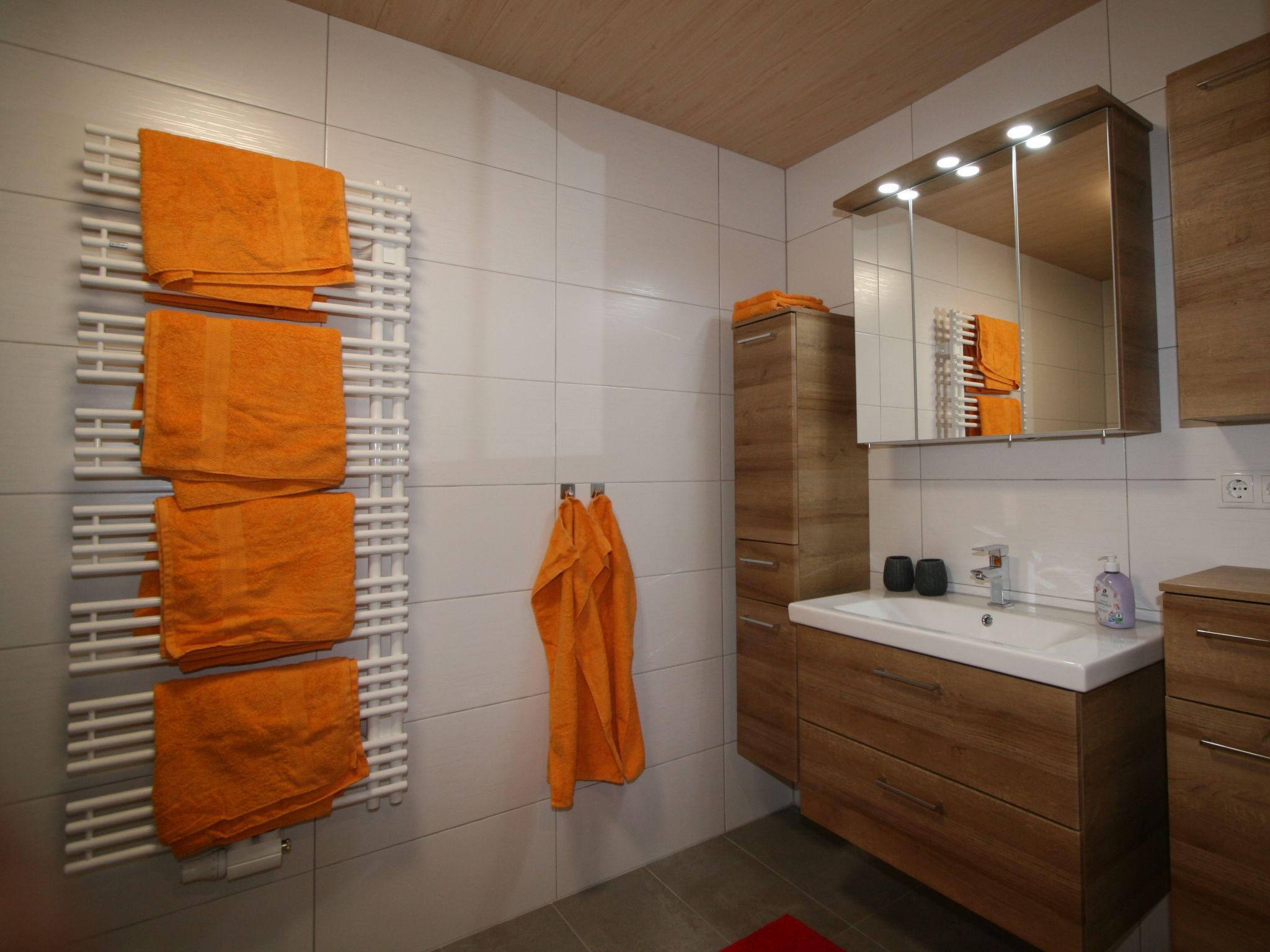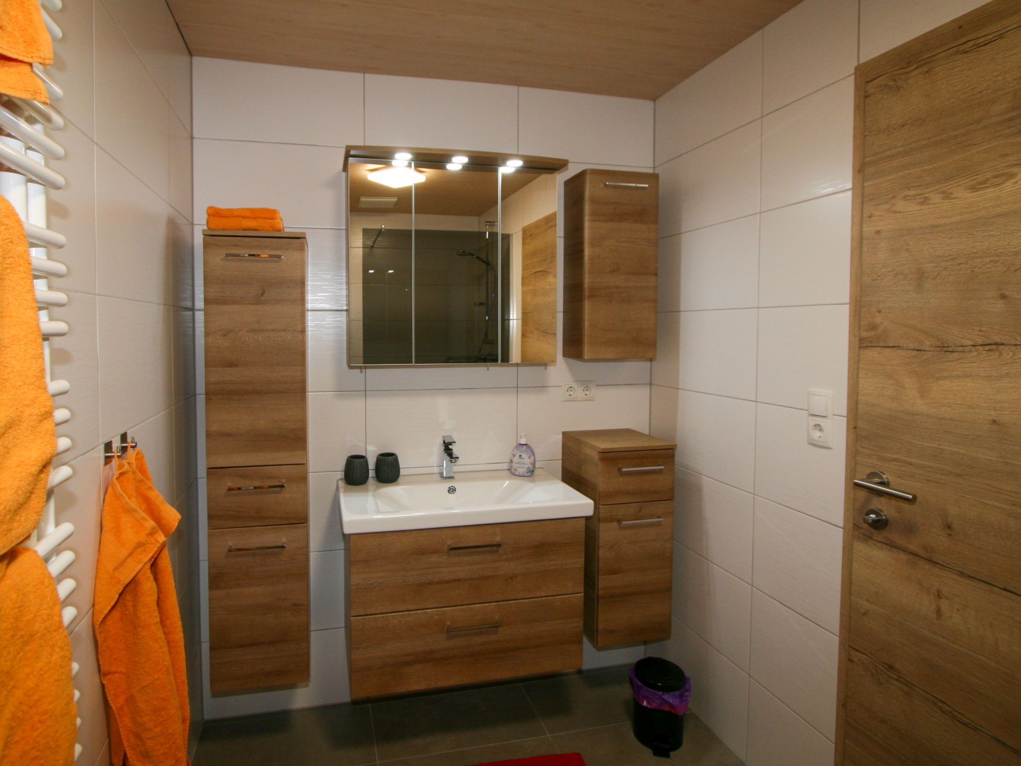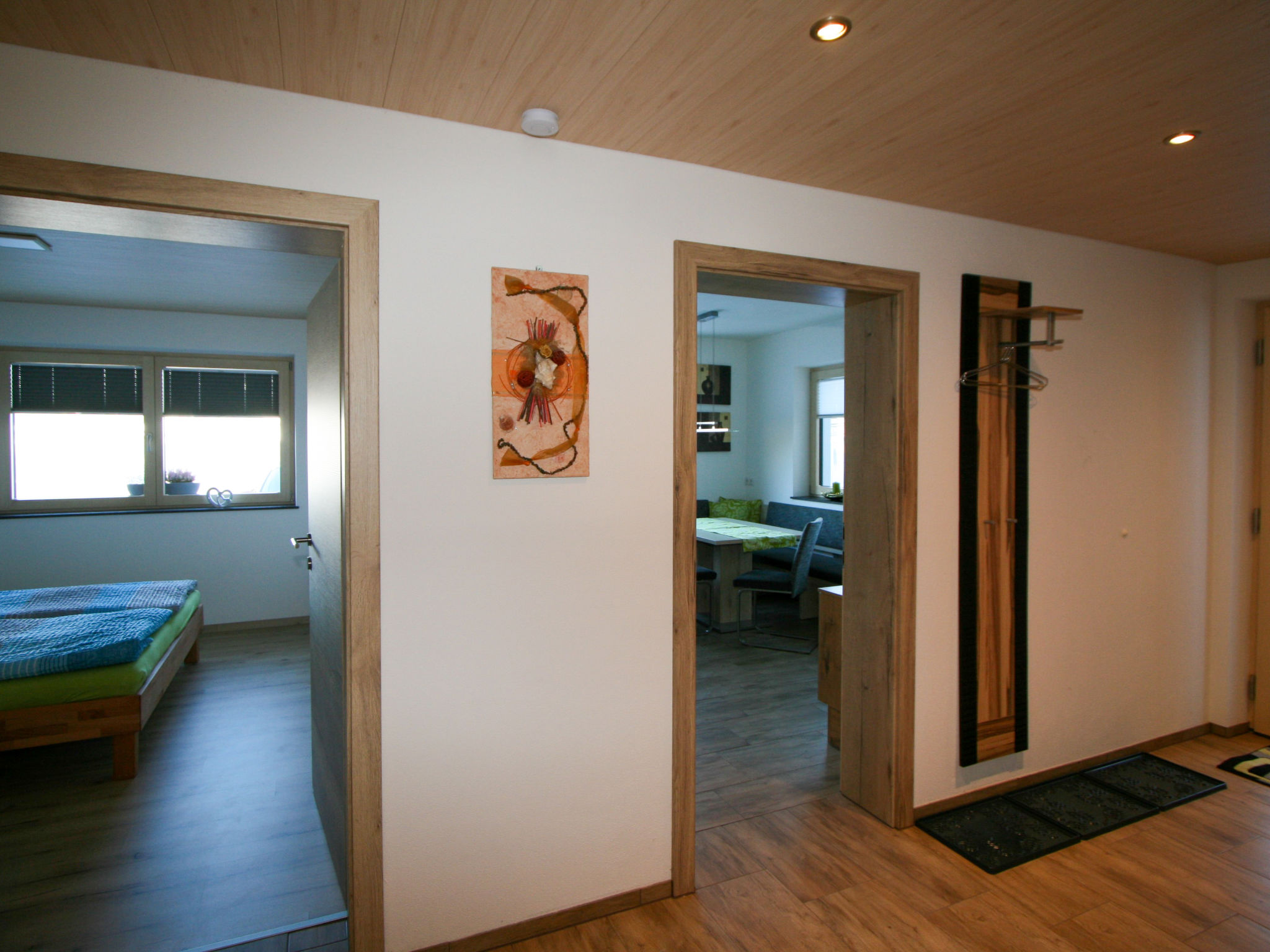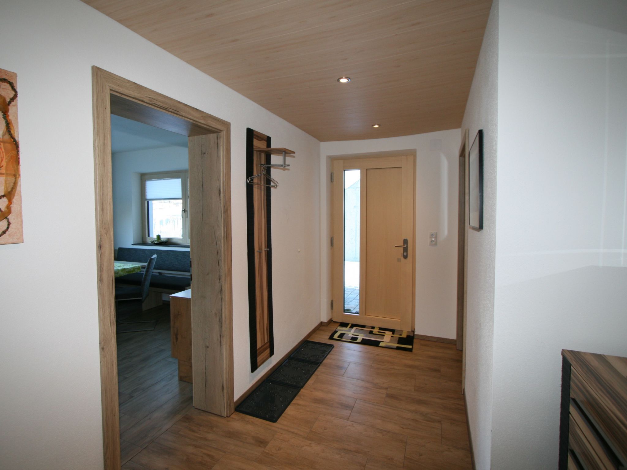 3-Zimmer-Wohnung 67 m2, im Erdgeschoss. Modern und gemütlich eingerichtet: Eingang. 1 Doppelzimmer. 1 Zimmer mit 1 x 2 Etagenbetten, 1 Doppelbett. Wohnküche (Backofen, Geschirrspüler, 4 Glaskeramikherd Platten, Toaster, Wasserkocher, Mikrowelle) mit Essecke und Sat-TV (Flachbildschirm). Dusche, sep. WC. Terrassenmöbel, Sitzplatz, Abstellkammer. Herrliche Panoramasicht auf die Berge und das Tal. Bitte beachten: eigener Eingang.