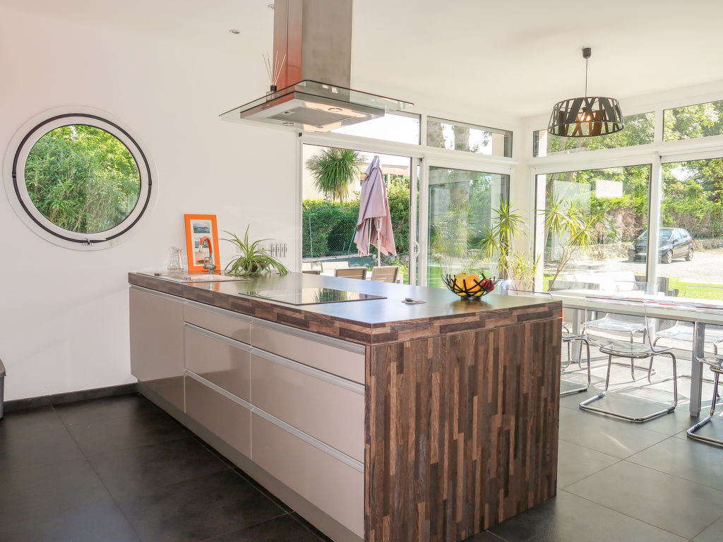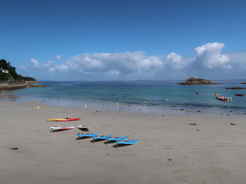 Das 2011 gebaute Ferienhaus steht im Ortsteil Tréboul, 2,5 km von der Ortsmitte von Douarnenez entfernt. Einkaufsmöglichkeiten und Restaurants in Tréboul ca. 600 m, Supermarkt ca. 800 m. Meer und Jachthafen ca. 900 m, Sandstrand 'Sables Blancs' ca. 1 km, Wassersportzentrum 1,2 km. Thalasso-Zentrum ca. 1 km. Offenes, ca. 900 m² großes und teils von Eichen bestandenes Gartengrundstück mit Holzterrasse in Südwestausrichtung. Gartenmöbel, 2 Sonnenliegen, Sonnenschirm, transportabler Grill. Garage. Weitere Parkmöglichkeiten auf dem Grundstück. Die hilfsbereiten Besitzer wohnen im Nachbarhaus. Gute, moderne Einrichtung. Fliesen- und Parkettboden. TV (7 deutsche Programme). Internetzugang (WLAN, inklusive). Waschmaschine in der Garage. Bügeleisen/-brett. Elektroheizung (Fußbodenheizung). Hinweis: Rauchen ist im Haus nicht gestattet.