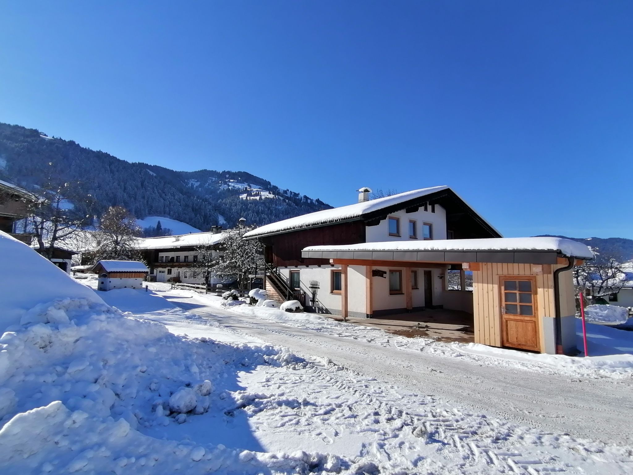 Haus BARBARA steht in Niederau, an der Straße nach Hopfgarten (7,6 km). Ortsmitte und Supermarkt 1 km. Gasthof ca. 100 m. Pro Wohnung ein überdachter Parkplatz am Haus. Die Besitzer betreiben nebenan einen Bauernhof. Die Wohnungen sind feriengerecht und freundlich eingerichtet. Jeweils Sat-TV. Internetzugang (WLAN, inklusive). Laminatboden. Zentralheizung. Winter-Infos: Pferdeschlittenabfahrt vor dem Haus. Tennladen-Schlepplift (als Zubringer zur Markbachjochbahn (1 km). Skiabfahrt bis in unmittelbare Hausnähe möglich. Loipe ca. 100 m. Talstation Schatzbergbahn in Auffach 10 km (Einstieg ins Skigebiet 'Skijuwel Alpbachtal - Wildschönau'). Zum Skigebiet 'Wilder Kaiser - Brixental' 7 km. Skiständer außen am Haus.