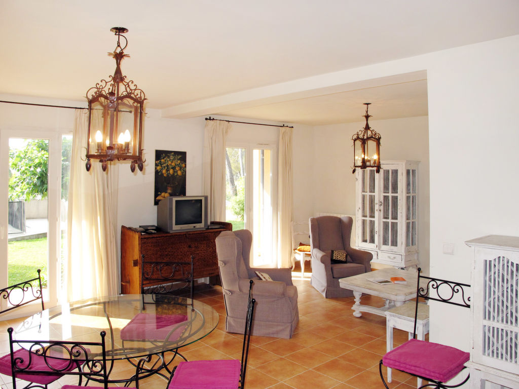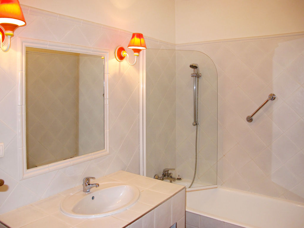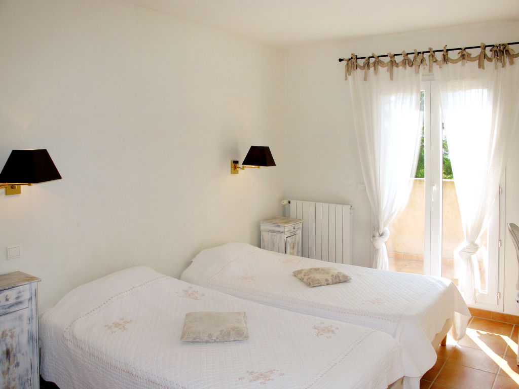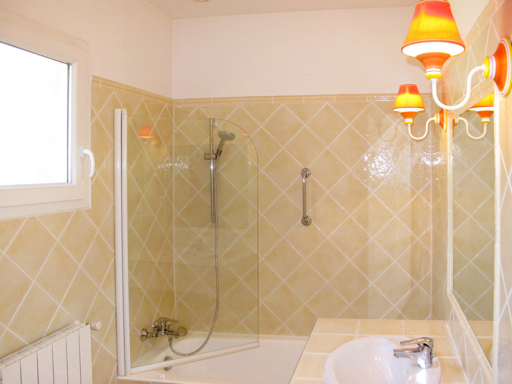 4-Zimmer-Haus, 3 Ebenen, ca. 125 m². Erdgeschoss: Eingangsbereich. Großer Wohnraum mit Sitzgruppe, Kamin, Essplatz, Fenstertüren zur Terrasse. Küche (4 Ceranfelder, Backofen, Mikrowelle, Geschirrspüler, Kühl-/Gefrierkombination, Kaffeemaschine, Wasserkocher, Toaster), Terrassenausgang. Sep.WC. Zwischenetage: Zweibettzimmer mit Bad. Obergeschoss: Schlafzimmer mit franz. Bett (1,60 m breit) und Dusche, Ausgang zur Dachterrasse. Zweibettzimmer mit Bad und Ausgang zur Dachterrasse. Sep.WC. Hinweis: Bei Buchung zum Preis für 4 bzw. 2 Personen bleibt 1 bzw. bleiben 2 Schlafzimmer verschlossen. Inserat eines gewerblichen Vermieters nach Artikel 155, IV, CGI