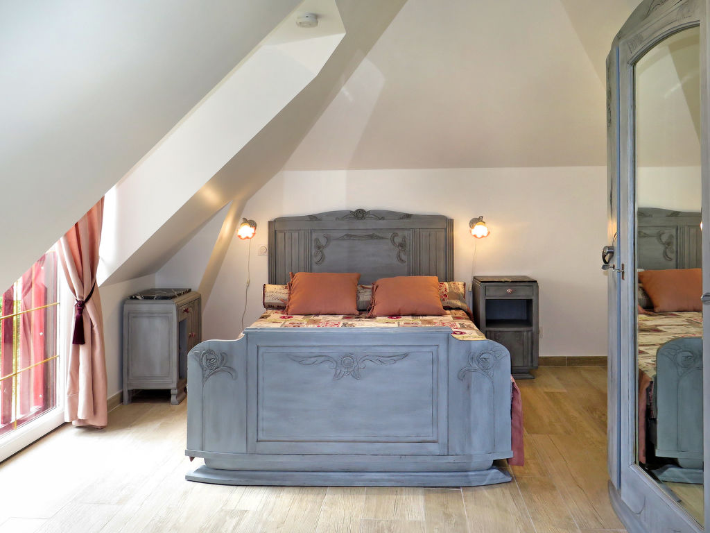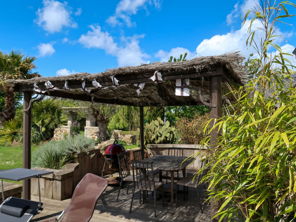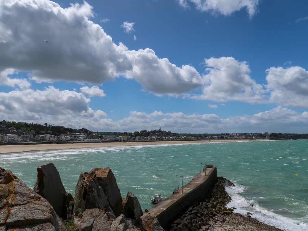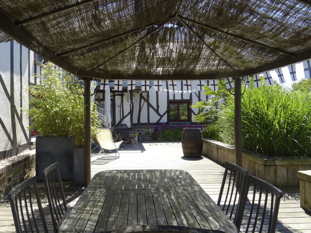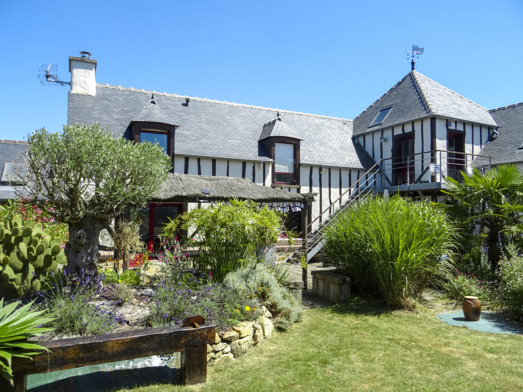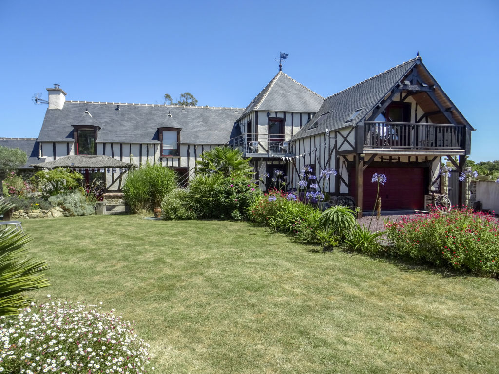 Das für die Region typische Fachwerkhaus VALHALLA mit 2 Hausteilen steht, zusammen mit dem Haus der Besitzer, herrlich im Grünen auf einem insgesamt ca. 6600 m² großen Anwesen eines ehemaligen Gehöfts. Ortsmitte Planguenoual und erste Einkaufsmöglichkeit 1 km. Zum nächsten Sandstrand und Supermarkt 3 km. Pléneuf-Val-André mit schönem, langen Badestrand 6 km. Zur gemeinsamen Nutzung steht den beiden Ferienhausteilen ein ca. 1000 m² großes, durch Hecke und Zaun abgeschlossenes, gepflegtes Rasen- und Kiesgrundstück mit Bäumen und schöner Bepflanzung zur Verfügung. Zu unserem Ferienhaus gehören eine windgeschützte Terrasse mit Gartenmöbeln, 4 Sonnenliegen, transportabler und gemauerter Grill sowie 2 Balkone mit schönem Blick auf Felder und Wiesen, davon einer überdacht und windgeschützt. Parkmöglichkeit für 2 PKW auf dem Grundstück oder entlang der Straße (die Garage bleibt verschlossen). Der 2016 renovierte Hausteil ist gut und ansprechend eingerichtet. Fliesenboden. Sat-TV (deutsche Programme). Internetzugang (WLAN, inklusive). Safe. Waschmaschine. Bügeleisen/-brett. Wärmepumpenheizung. Hinweis: Rauchen ist im Haus nicht gestattet.