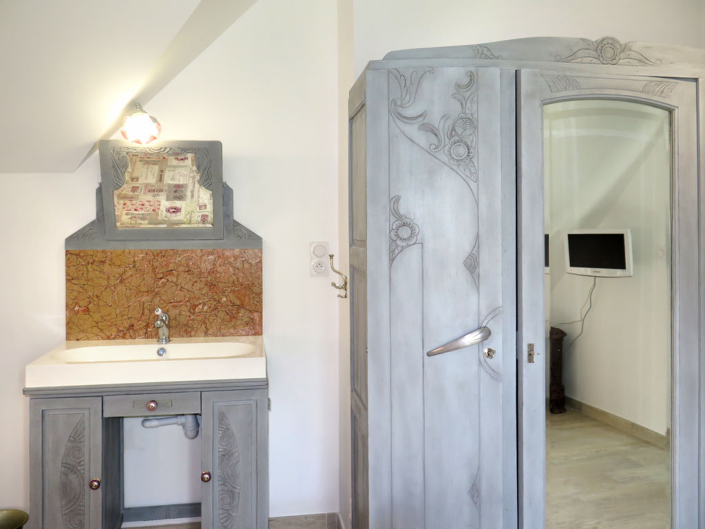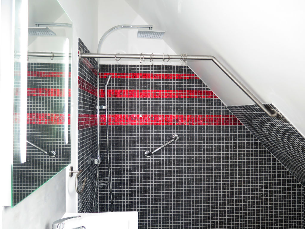3-Zimmer-Hausteil, ca. 60 m. Zugang über Außentreppe in die 1. Etage: Wohnraum mit Sitzcouch, Essplatz (Eckbank), Küchenzeile (4 Ceranfelder, Backofen, Mikrowelle, Geschirrspüler, Kühl-/Gefrierkombination, Kaffeepadmaschine, Wasserkocher, Toaster), Balkonausgang. Schlafzimmer (Dachschräge) mit franz. Bett, Waschbecken. Schlafzimmer (Dachschräge) mit 2 Einzelbetten, Waschbecken und Balkonausgang. Dusche/WC. Inserat einer Privatperson nach Artikel 155, IV, CGI.