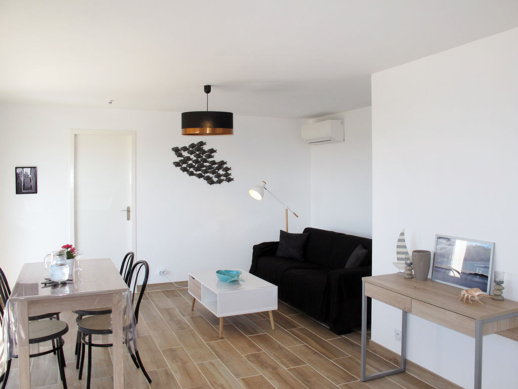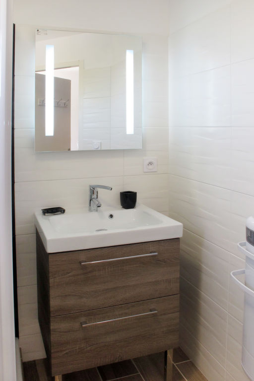 2-Zimmer-Wohnung, Erdgeschoss, ca. 45 m². Wohn-/Schlafraum mit Doppelbettcouch, Essplatz, offene Küche (3 Induktionsfelder, Backofen, Mikrowelle, Geschirrspüler, Kühl-/Gefrierkombination, Kaffeemaschine, Wasserkocher, Toaster), Terrassenausgang. Schlafzimmer mit franz. Bett und Dusche/WC. Flexibilität bei der Bettenaufteilung: Es stehen mehr Schlafmöglichkeiten zur Verfügung als die maximal zugelassene Personenzahl, diese darf dennoch nicht überschritten werden. Inserat einer Privatperson nach Artikel 155, IV, CGI.