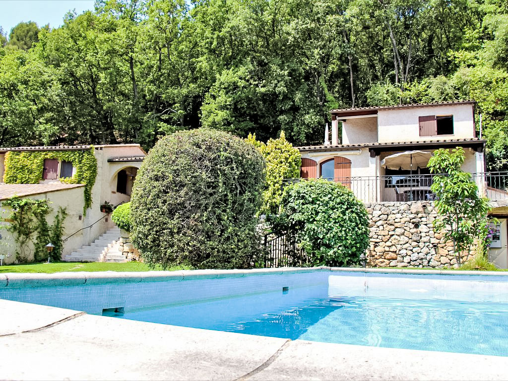 Carros 16 km von Vence: Das Anwesen besteht aus einem 2-stöckigen Landhaus mit 4 Studios. Es liegt 15 km nördlich von Nizza, auf 450 m Höhe ü.M. Ruhige Lage mit schöner Sicht auf die Hügel, die Berge und das enfernt gelegene Meer Mas/Landhaus "La Bachasse". Ausserhalb des Ortes, 25 km vom Meer, 25 km vom Strand. Zur Mitbenutzung: Grundstück 5'000 m2 mit Rasen, Schwimmbad (6 x 12 m, 7 - 200 cm tief, saisonale Verfügbarkeit: 01.Jan.-31.Dez.). Aussendusche, Tischtennis, Kinderspielplatz. Zur Alleinbenutzung: Garten 100 m2 (eingezäunt). Im Hause: Waschmaschine, Wäschetrockner (zur Mitbenutzung). Parkplatz (überdacht) auf dem Grundstück. Einkaufsgeschäft 1.5 km, Restaurant 1.5 km, Sandstrand "Nice" 25 km, Park "Marineland" 25 km. Golfplatz 12 km, Tennis 8 km. Bitte beachten: Fahrzeug empfohlen. Das Foto ist nur ein Hausbeispiel. Das Foto ist nur ein Wohnungsbeispiel. Ganzjährig offenes, aber nicht beheizbares Schwimmbad.